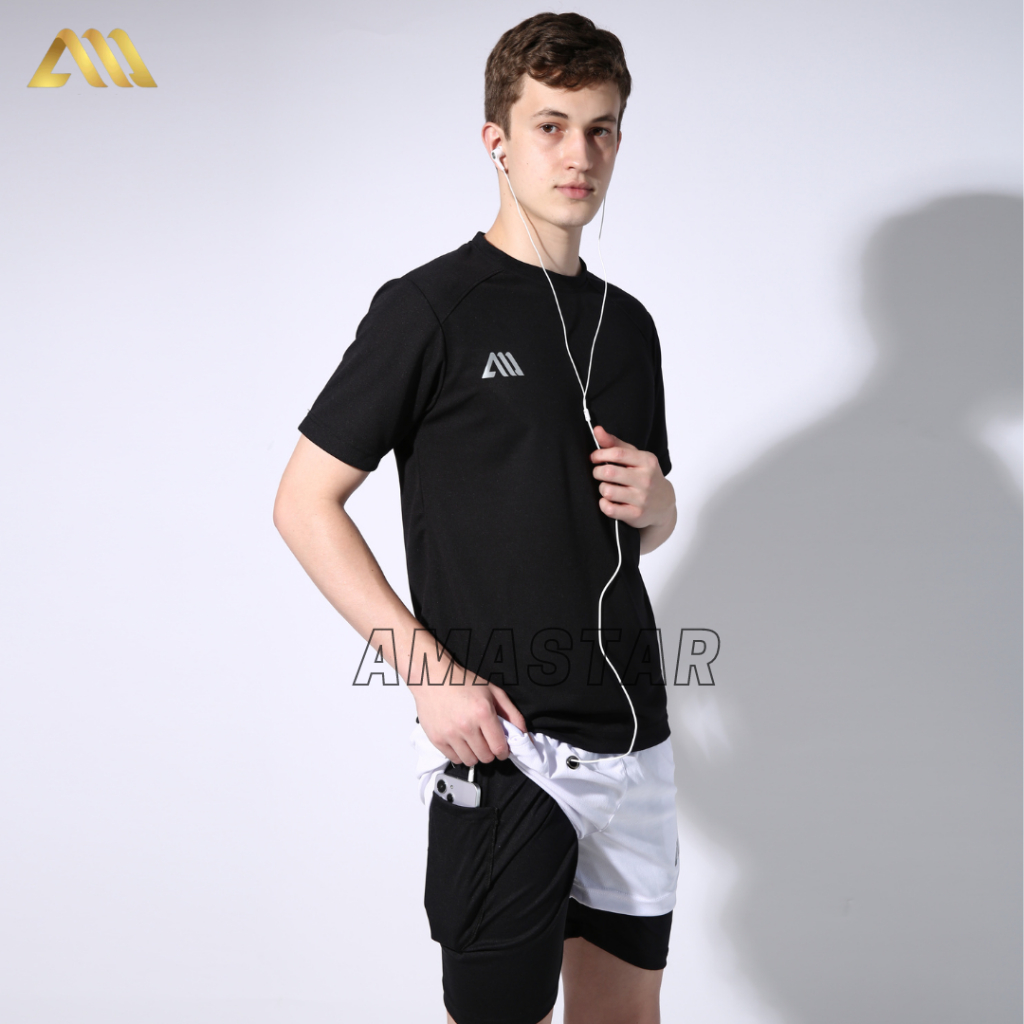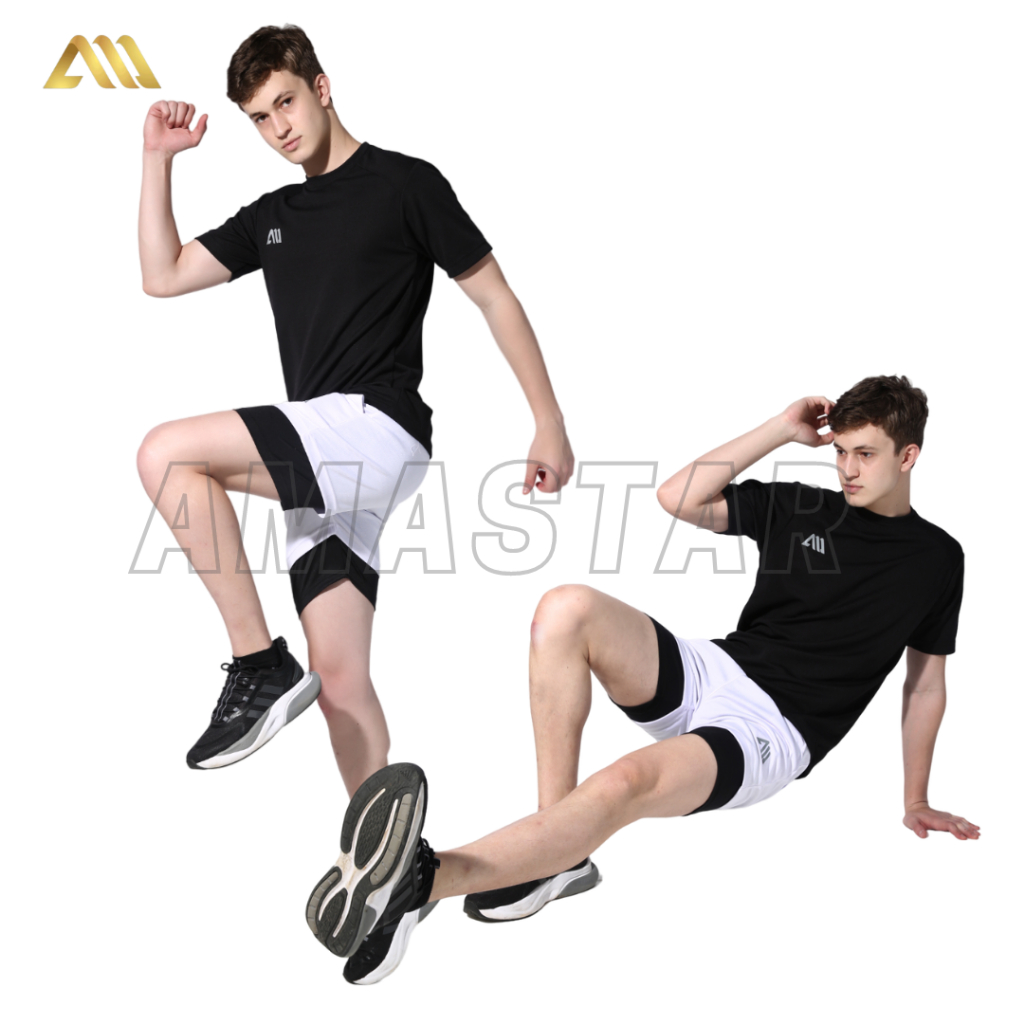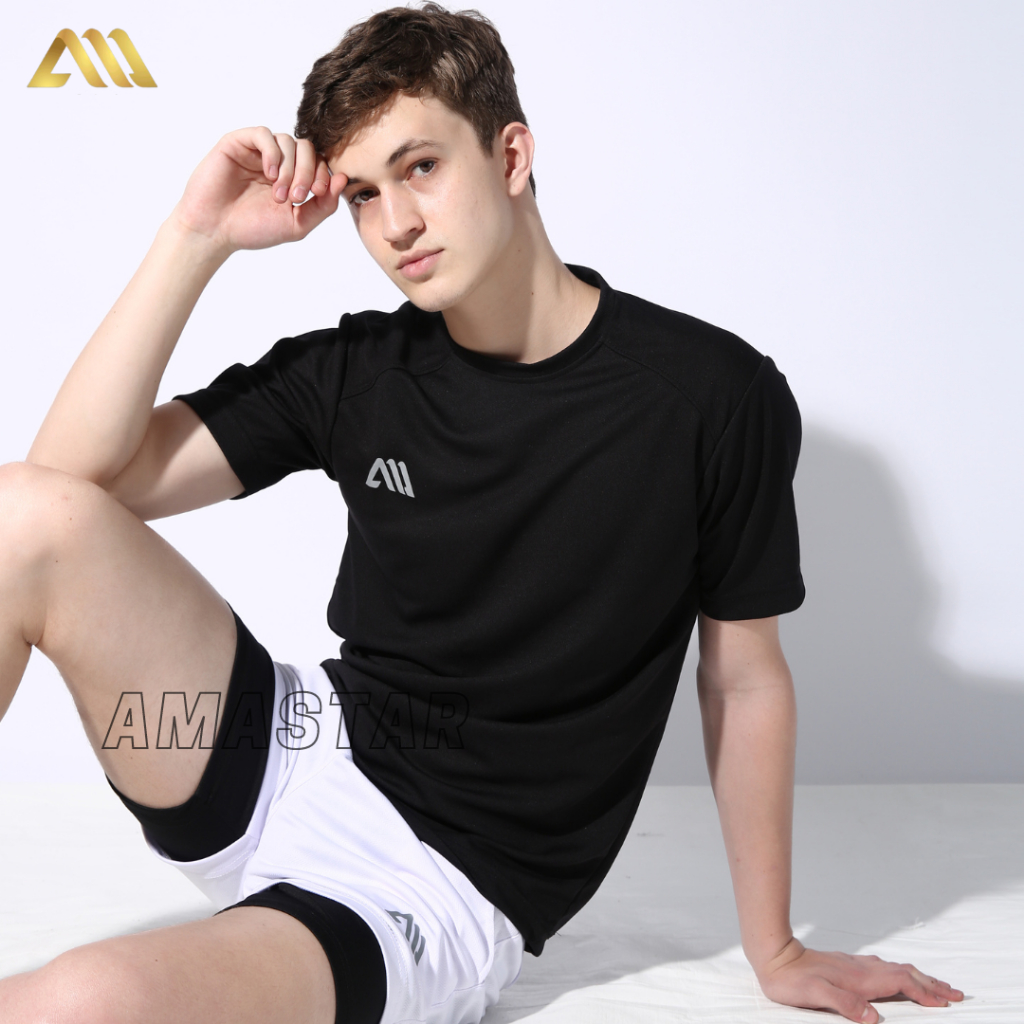 AMA - Setelan Kaos Jersey Atasan Polos Celana Running Double Layer Inner Compression