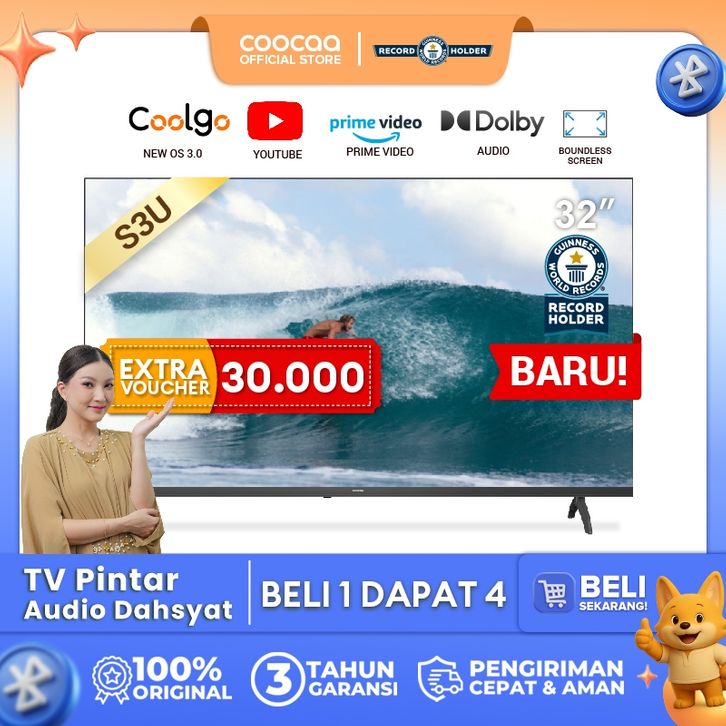 BARU COOCAA 32 inch S3U Smart TV - Digital TV - Dolby Audio - Youtube - Mirroring - Flick Free - Boundless -