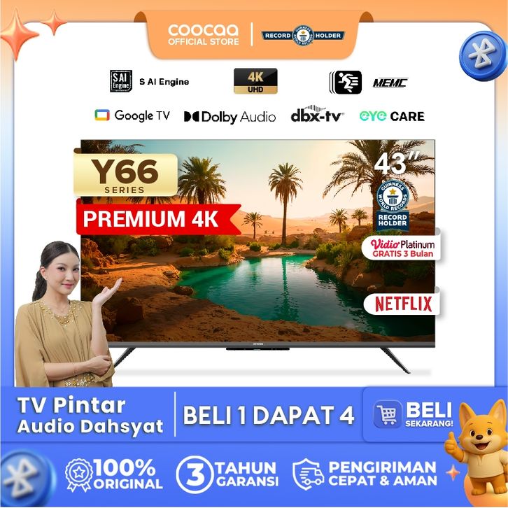 PROMO TERBARU COOCAA TV 43 inch Y66 - 4K Google TV - S AI Engine - MEMC - HDR10/HLG - Find My Remote - Eye Care