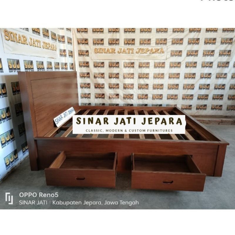 Tempat Tidur Jati Dipan Minimalis 2 Laci Sinar Jati Jepara
