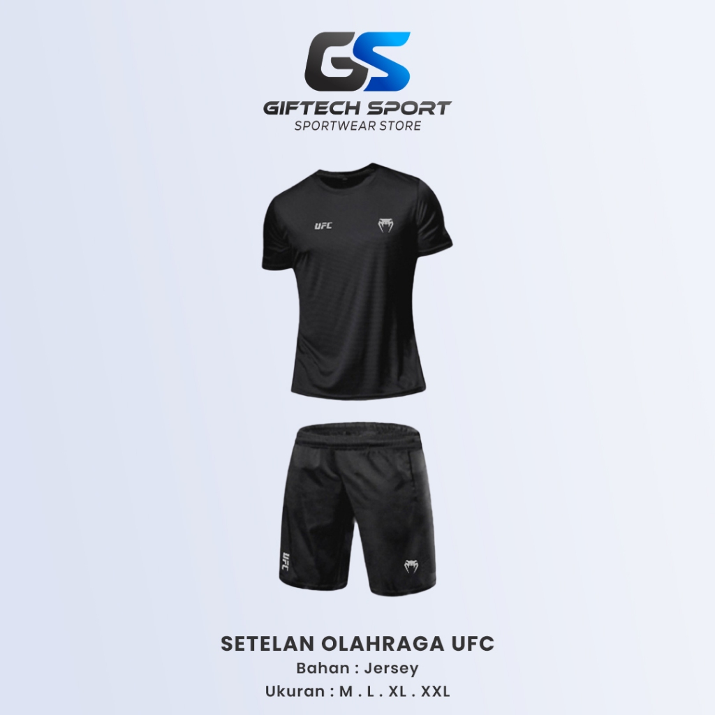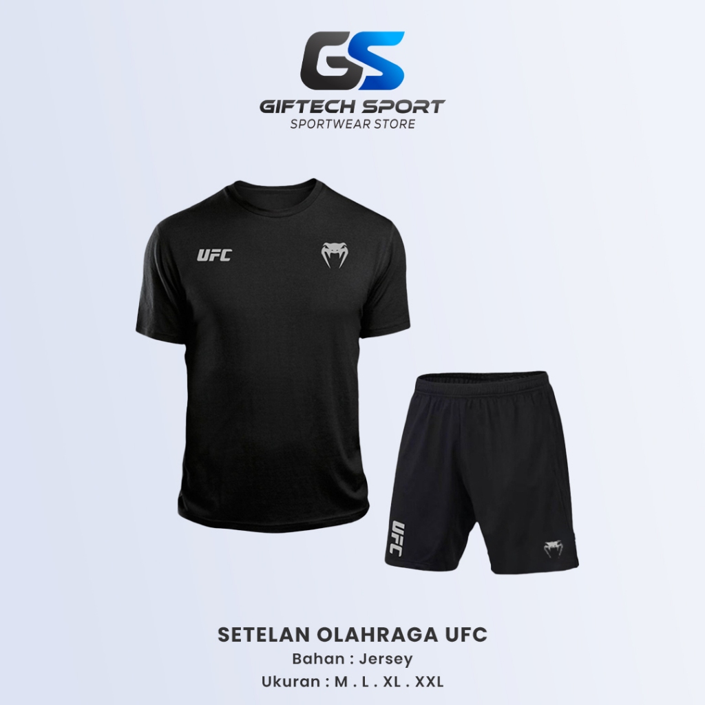 Baju Olahraga Pria 1 Set Kaos Lengan Pendek dan Celana Olah Raga UFC Dryfit Lari Jogging Futsal Badminton Volly