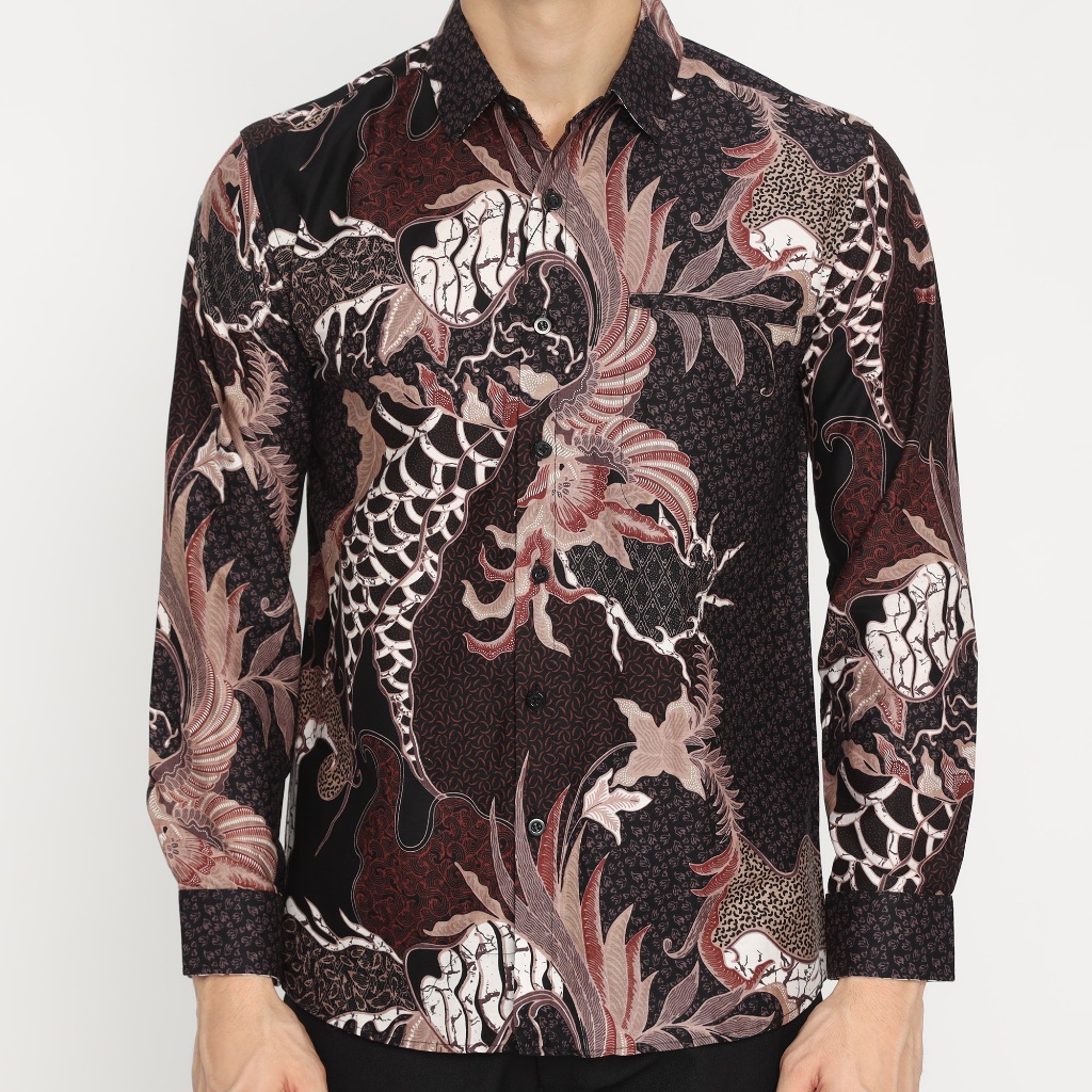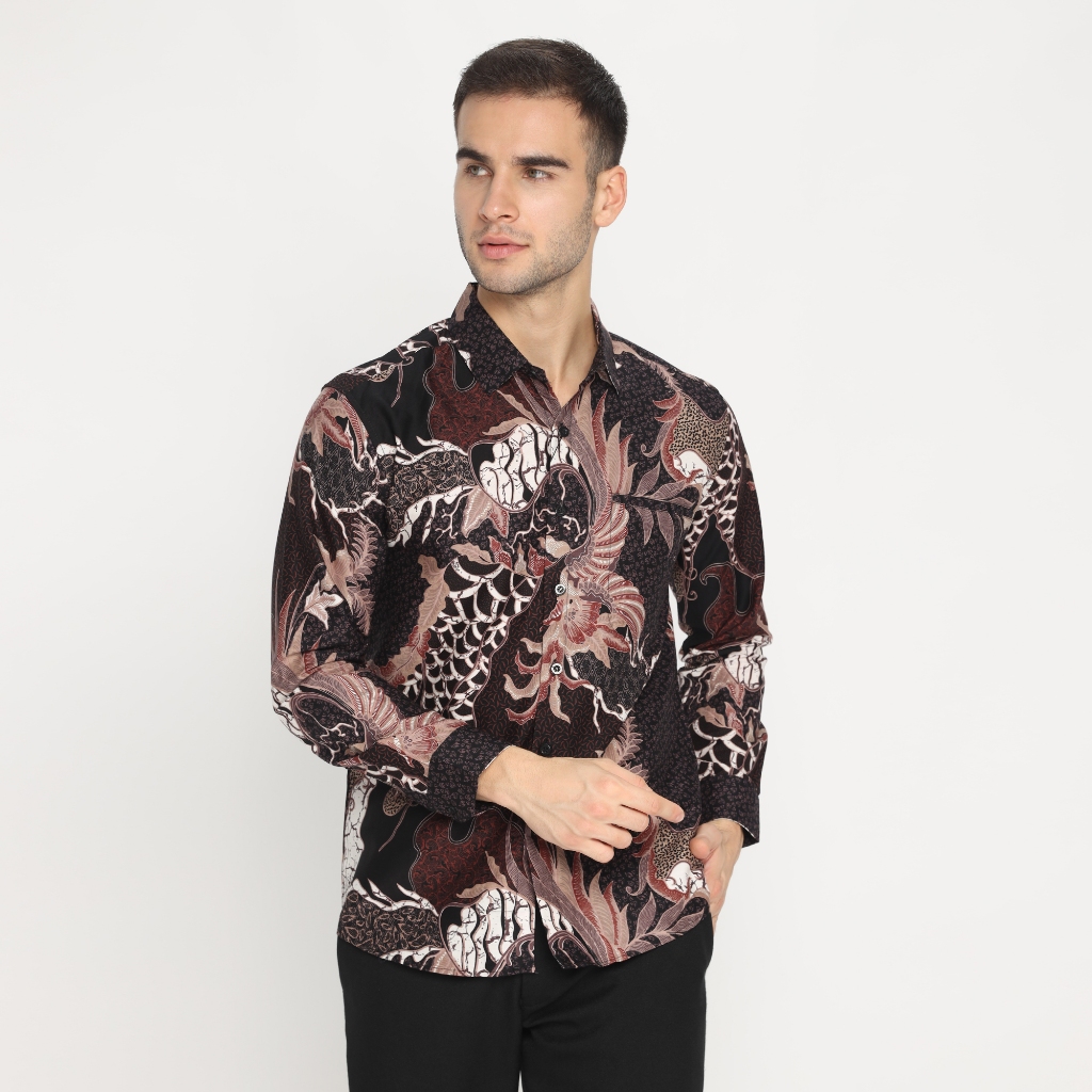 DANCUS Kemeja Batik Pria Lengan Panjang Batik Kondangan Pria Slimfitt Modern Motif Coklat OLR 236