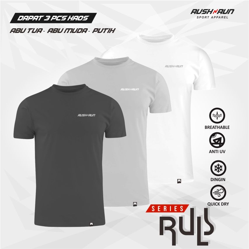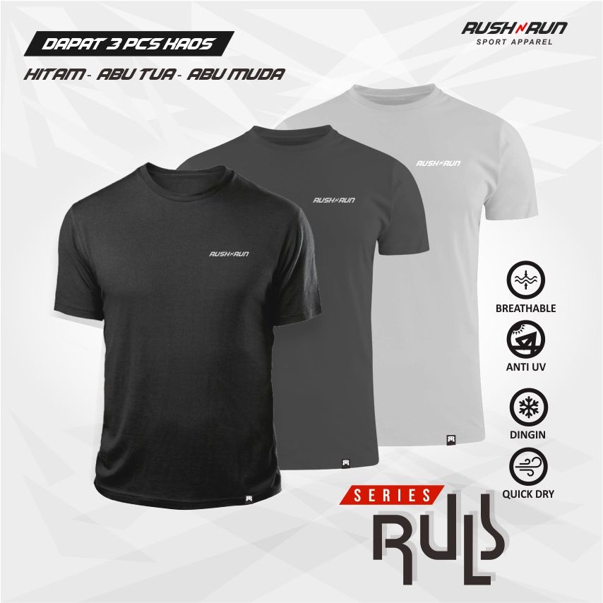 Paket 3 Pcs Kaos Baju Olahraga Pria T-Shirt Jersey Lari Bahan Dry Fit Breathable Quickdry