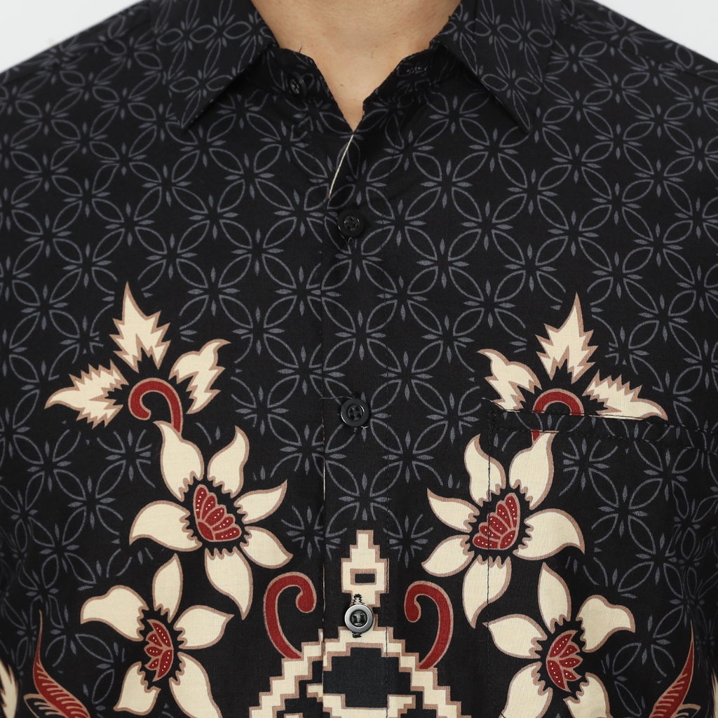 DANCUS Kemeja Batik Pria Lengan Panjang Batik Kondangan Pria Slimfitt Modern Warna Hitam OLR 233