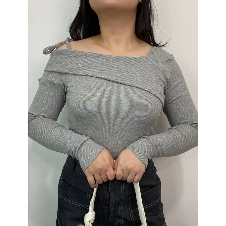 KAMALA Kimmy Top - Sabrina Knit Top - Korean Top Long Sleeve - Atasan Wanita Lengan Panjang Pita
