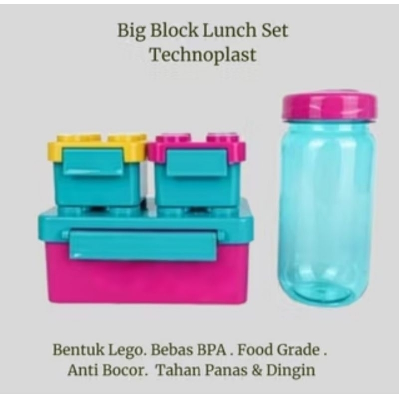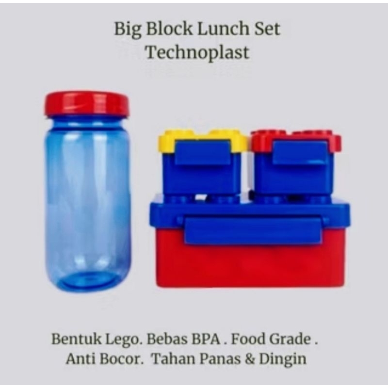 Tempat Makan Anak/ Lunch Box Big Block Set Technoplast/ Big Block Lego Lunch Box Set + Botol Minum/ Tepak Makan Set/ Tem