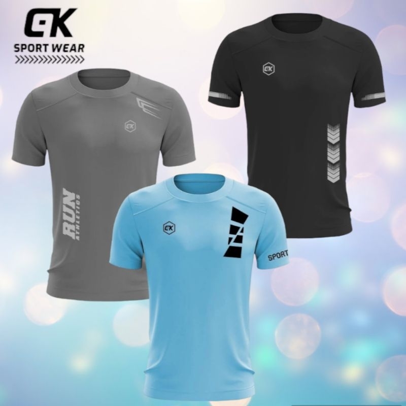 Paket 3 Pcs Baju Olahraga Pria Running Futsal Gym Fitness Volly Badminton Dryfit T-Shirt Baju Olahraga Harian Ready Bisa Bayar Di Tempat