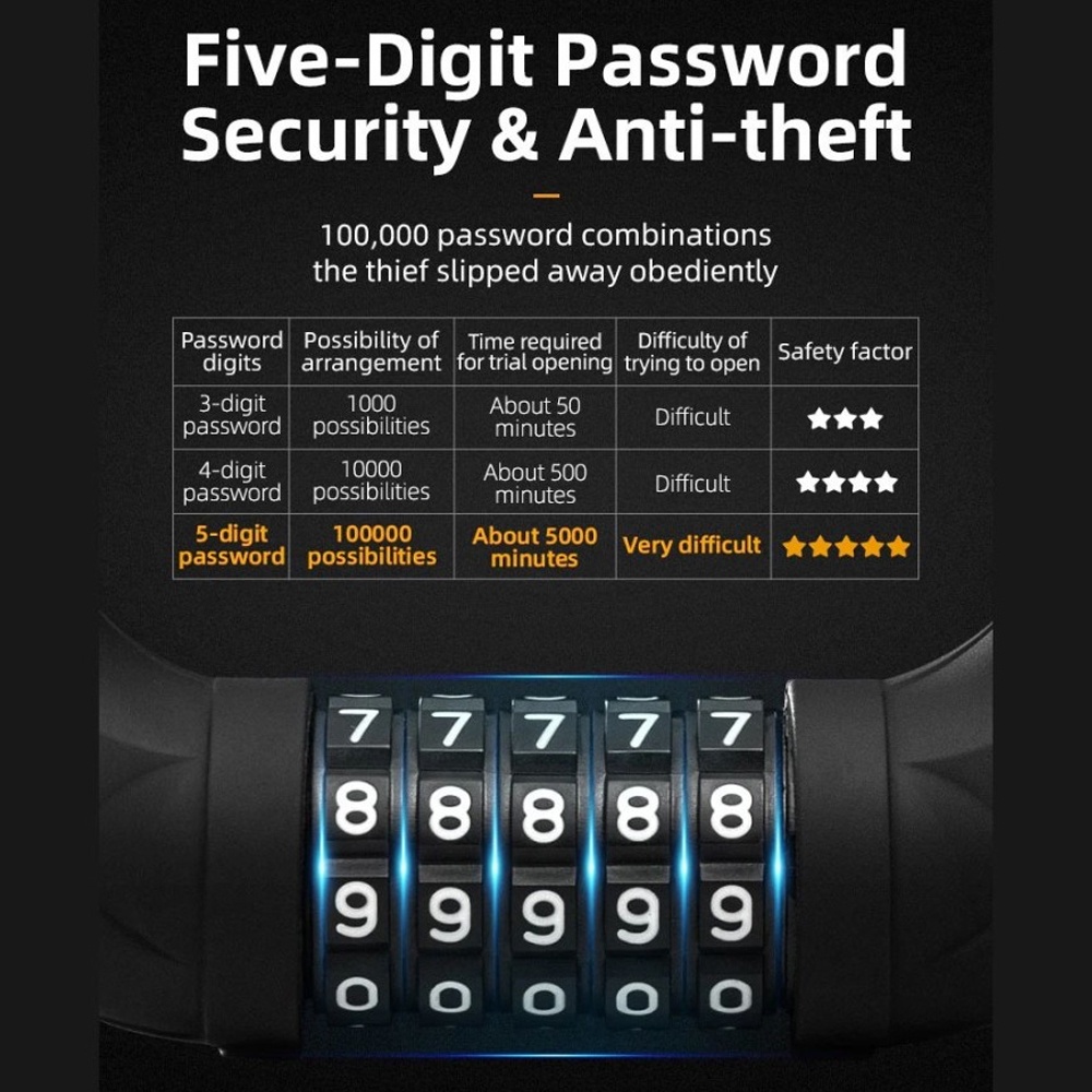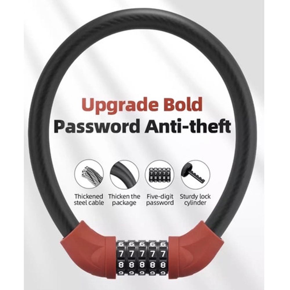 ROCKBROS RKS870 KUNCI GEMBOK SEPEDA BAJA 87CM BICYCLE BIKE LOCK STEEL 5 DIGIT E MTB SELI ROAD