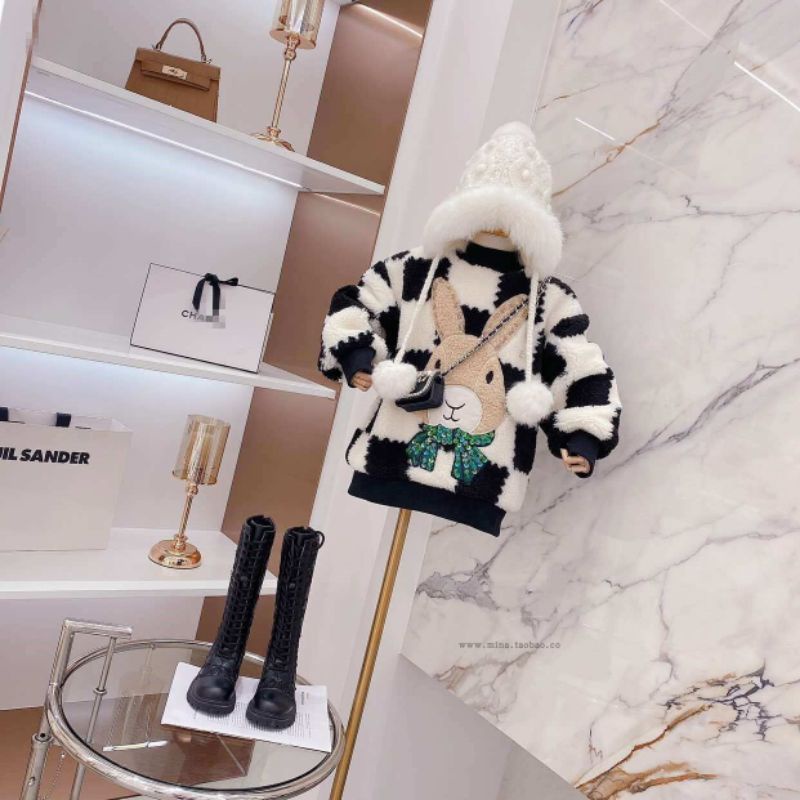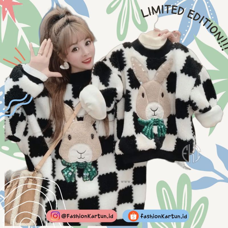 Rabbit - sweater bunny bulu kotak kotak tebal musim/udara dingin