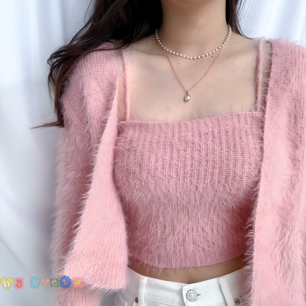 [BYKEETA] Naoko - Cardigan Bulu Sweater Tank Top Set Wol