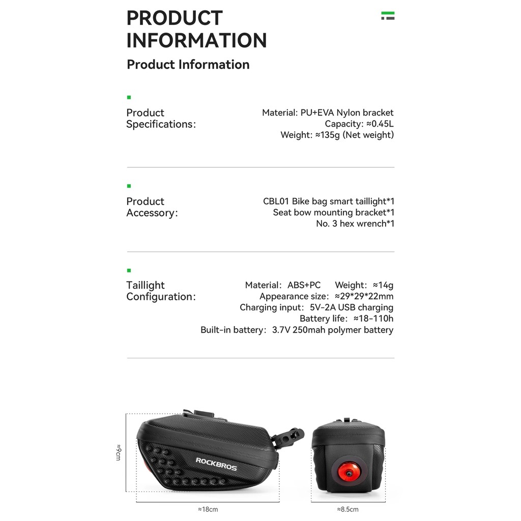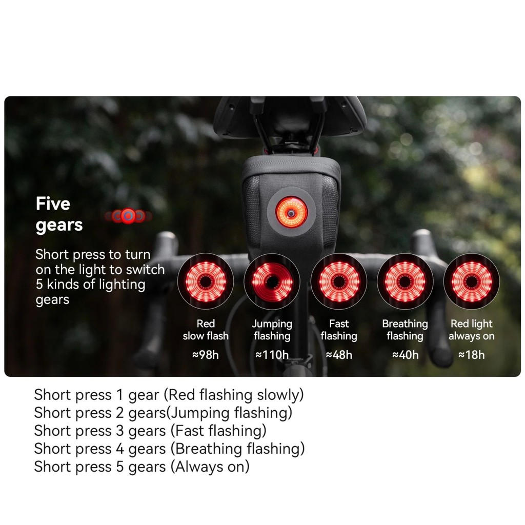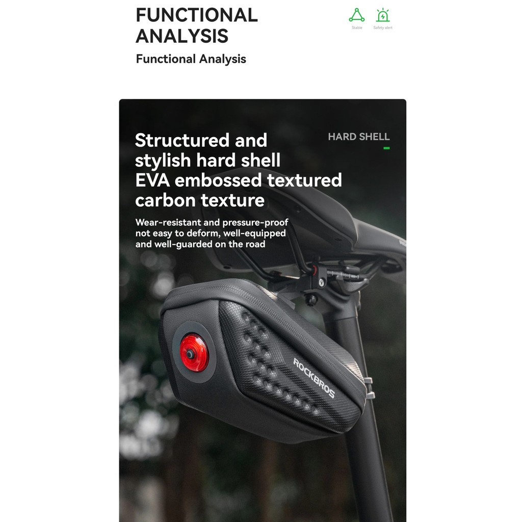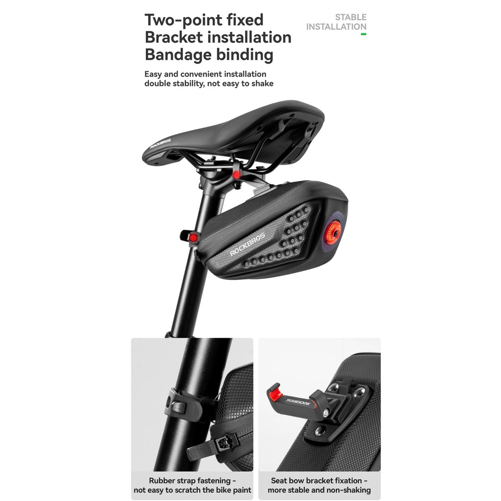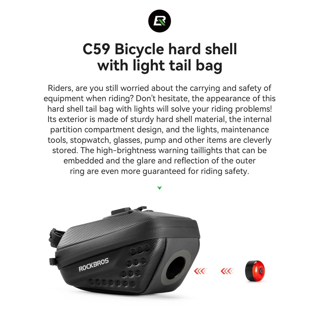 RCI ROCKBROS C59 TAS LAMPU BELAKANG SADEL SEPEDA CYCLING TAILLIGHT SADDLE BAG HARD SHELL SMART BRAKE CBL01 30130084
