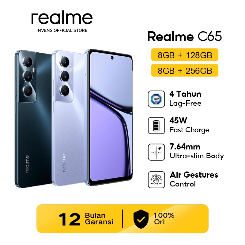 Official Realme C65 8+128GB/8+256GB (TUV SUD 4 Tahun Lag-free | 45W Fast Charge | 5000mAh Massive Battery | 7.64mm Ultra