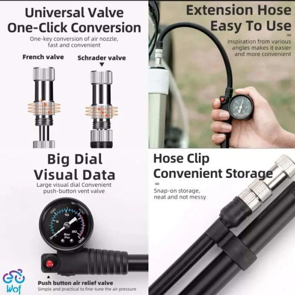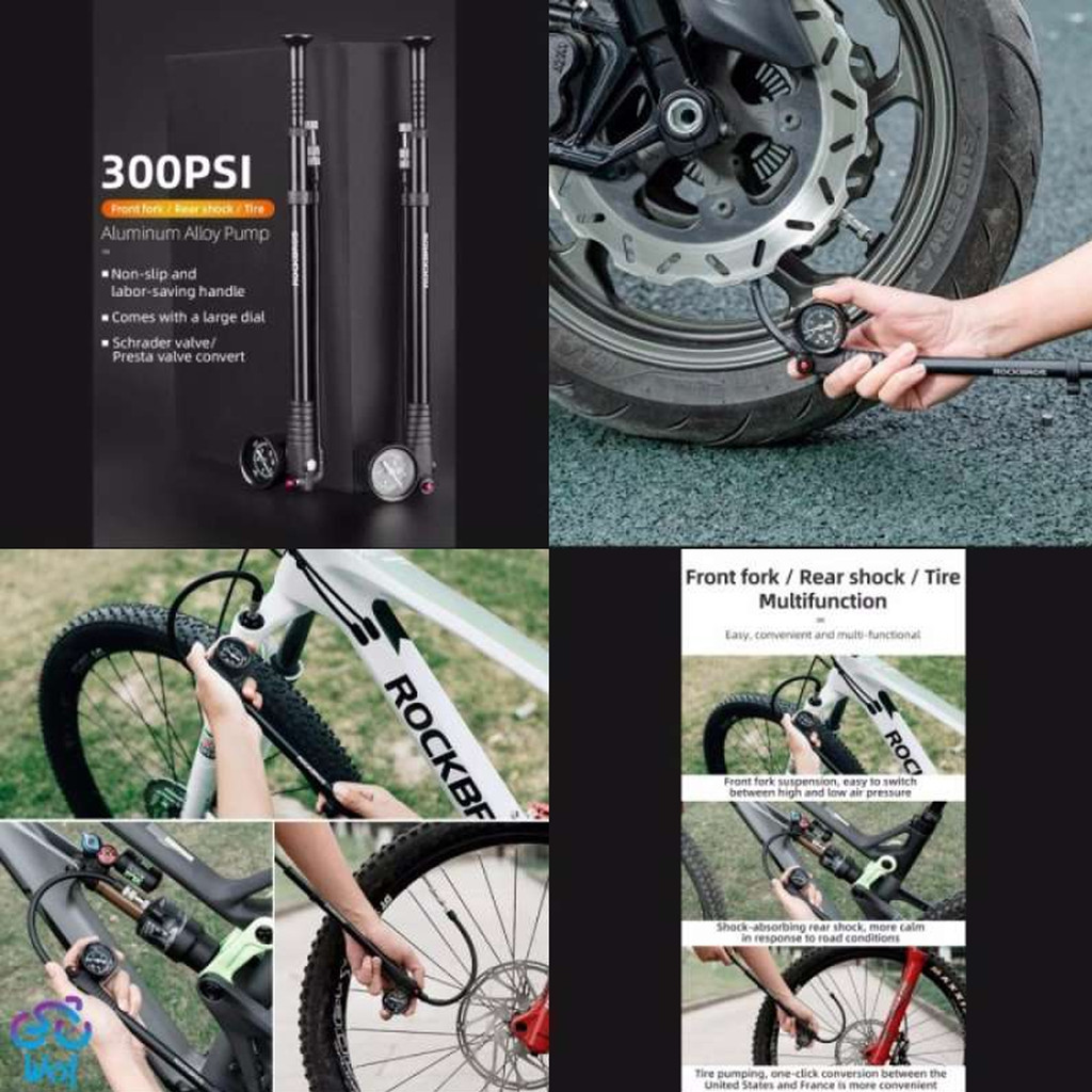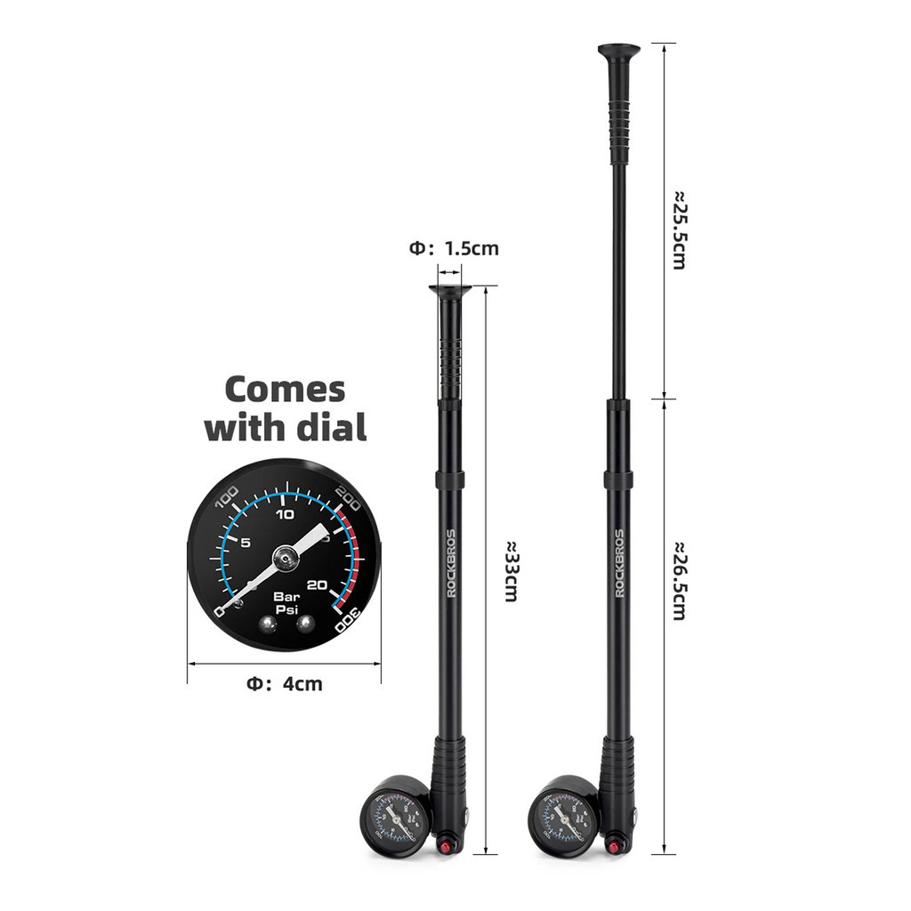 ROCKBROS 42320003 POMPA FORK SEPEDA PORTABLE 300PSI AIR SHOCK PUMPFORK REAR SUSPENSION PUMP W/ GAUGE