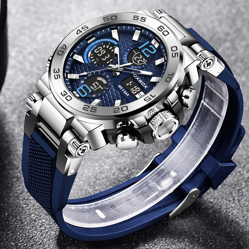 Jam Tangan Digital LED Dual Display Asli Jam Tangan Olahraga Pria Tahan Air Jam Tangan Kuarsa Chronograph Watch
