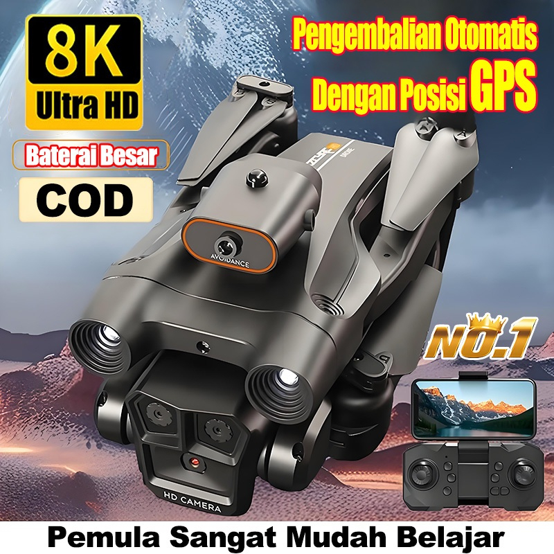 Drone Kamera 8K HD GPS Auto Return Jangkauan 5Km 2 Baterai FPV View Mini Portable Hadiah Keren