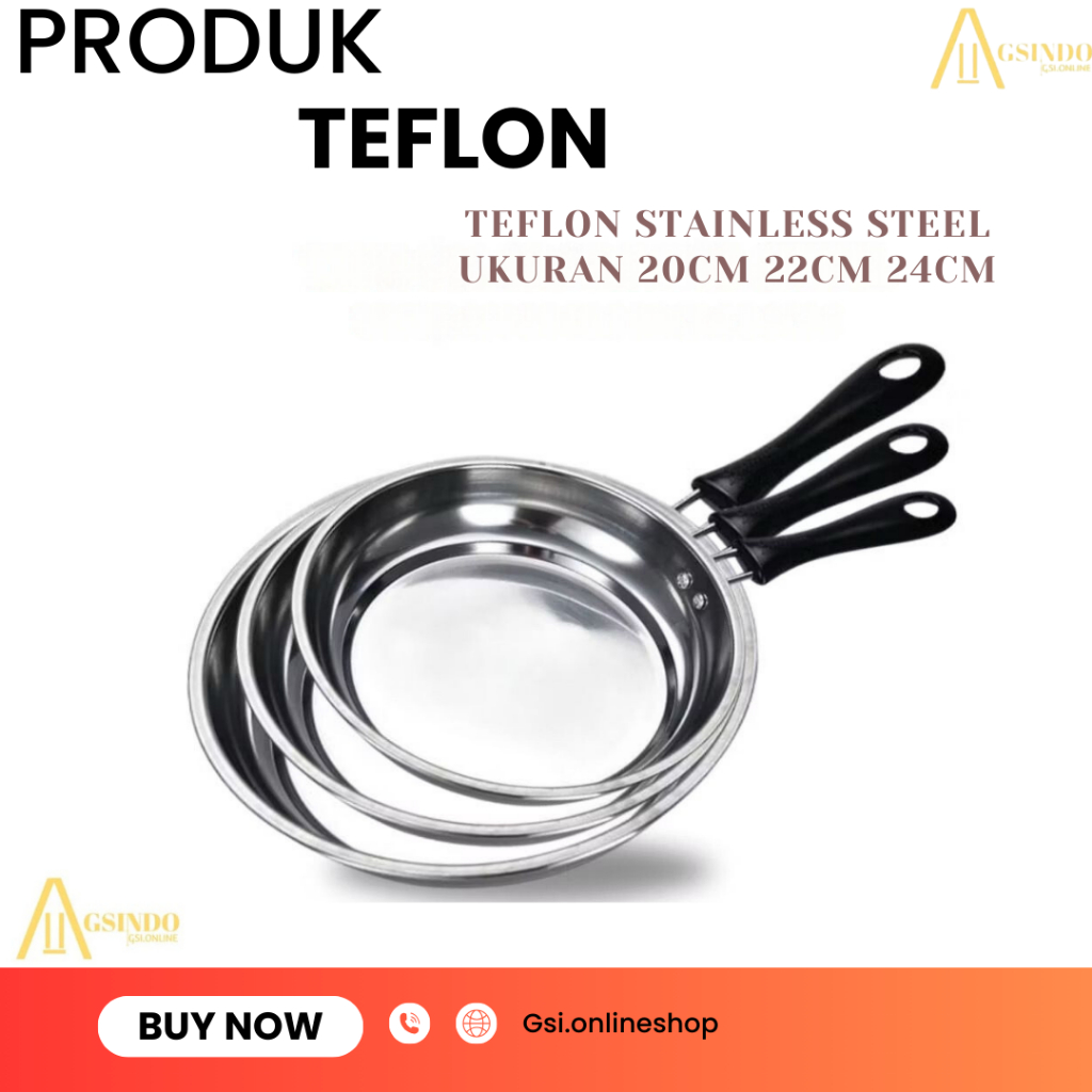 [GSI] | Teflon Stailess Steel |teflon Penggorengan | tersedia 3 Ukuran | Harga Termurah | Kualitas Premium