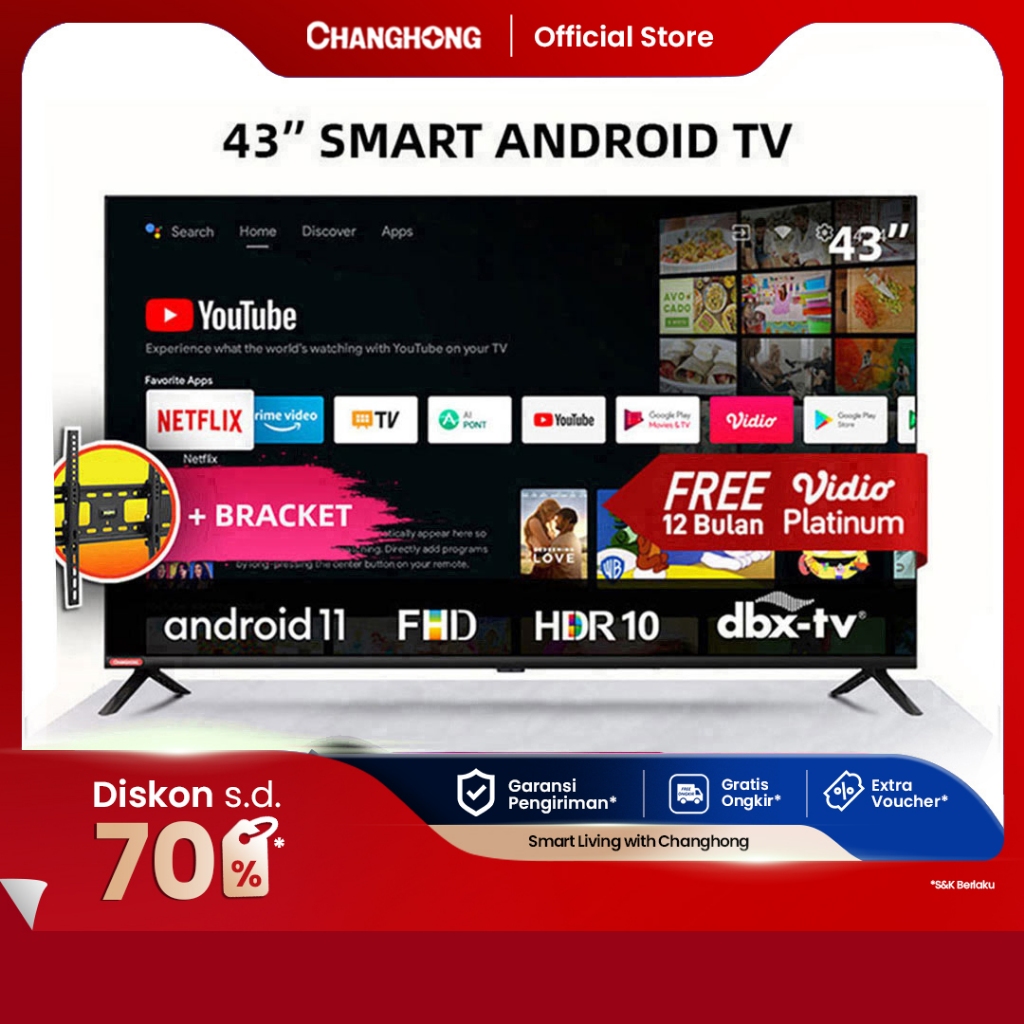 CHANGHONG 43 INCH NEWEST ANDROID 11 FRAMELESS SMART TV GOOGLE CERTIFIED DIGITAL TV FHD LED TV-L43G7N FREE BRACKET