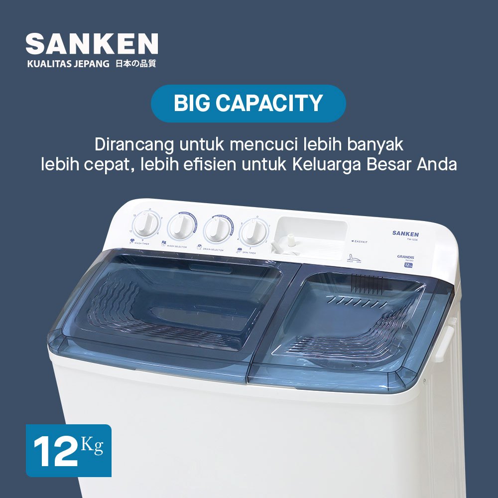 SANKEN MESIN CUCI 2 DUA TABUNG 12KG TW-1226 DOUBLE WASH TRAY