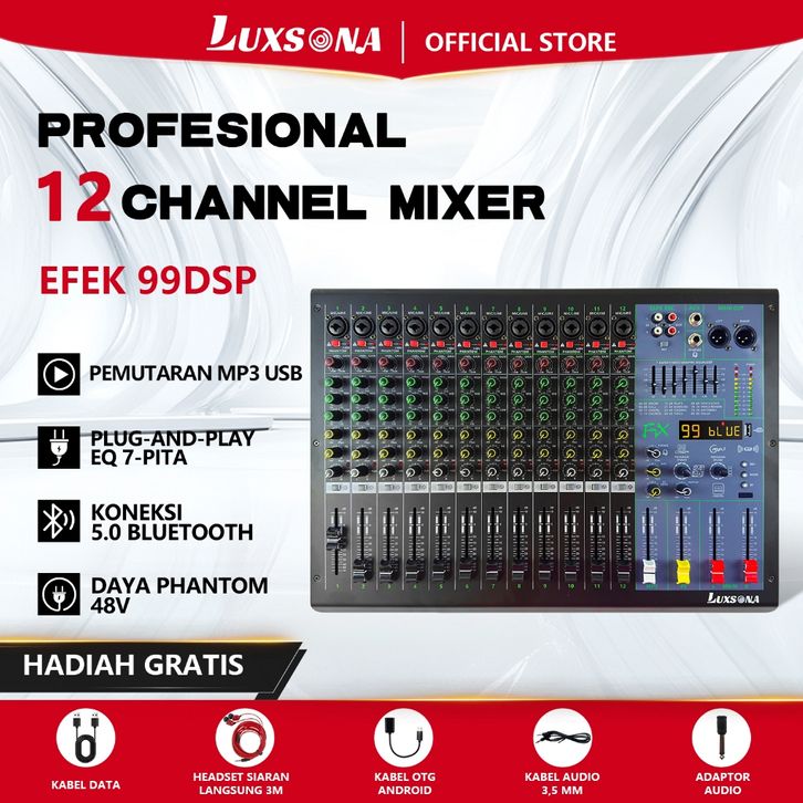 LUXSONA 12 Channel Mixer Audio Professional mixer karaoke 99DSP built-in 7-band EQ misker USB/SD/Bluetooth Amplifier