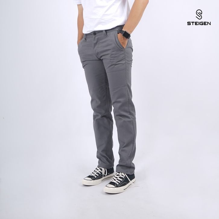 Steigen - Celana Chinos Panjang Pria Casual Non Stretch - Grey Original Official Store