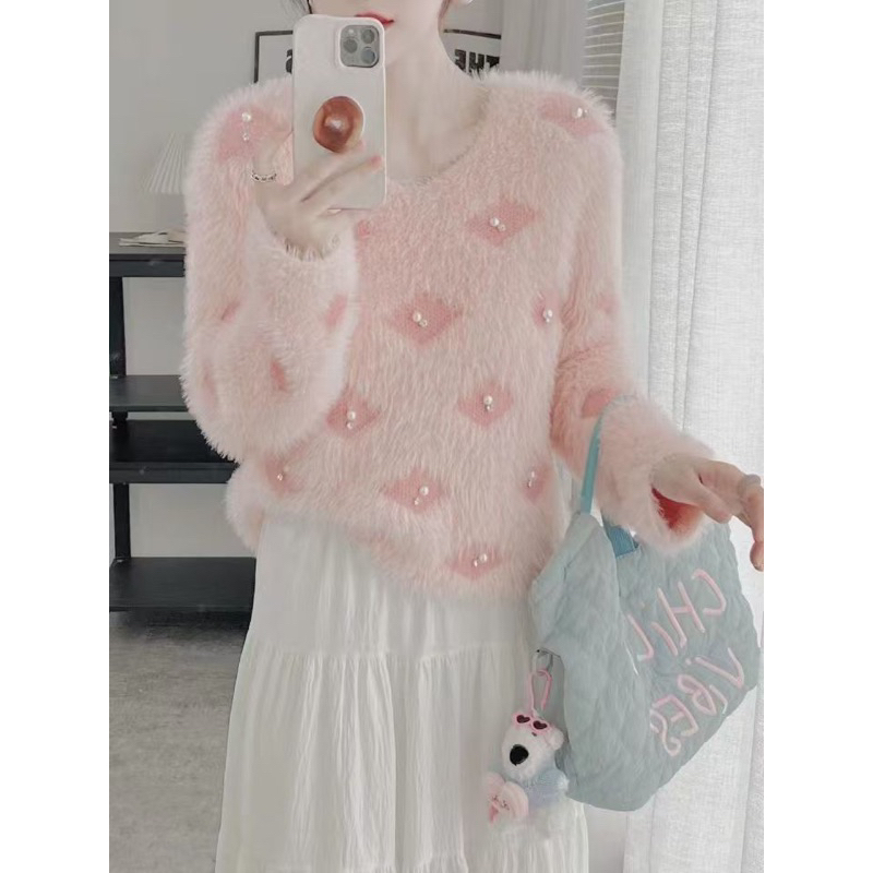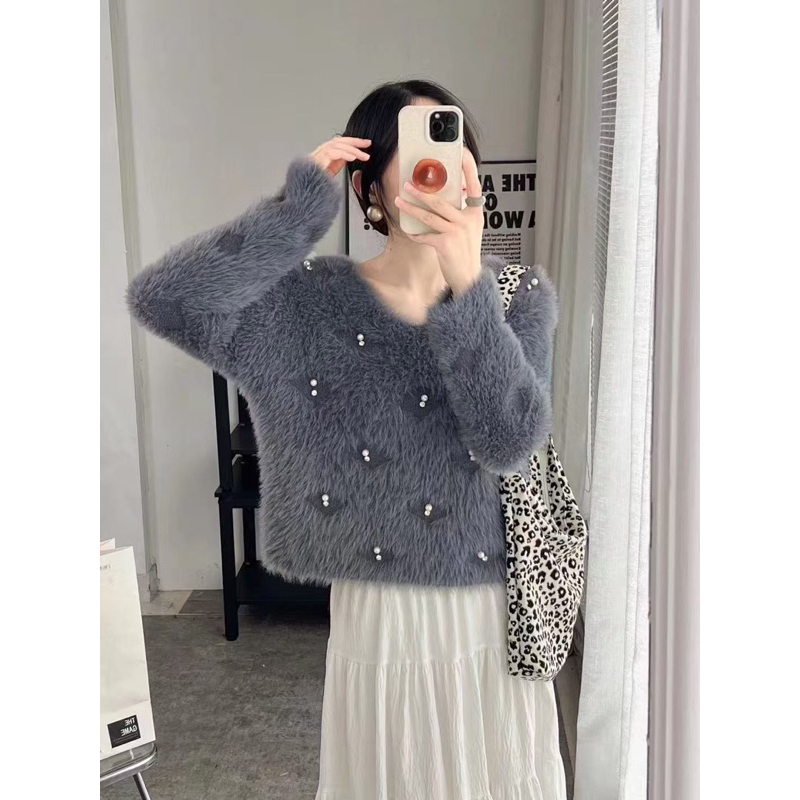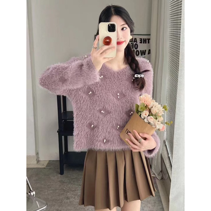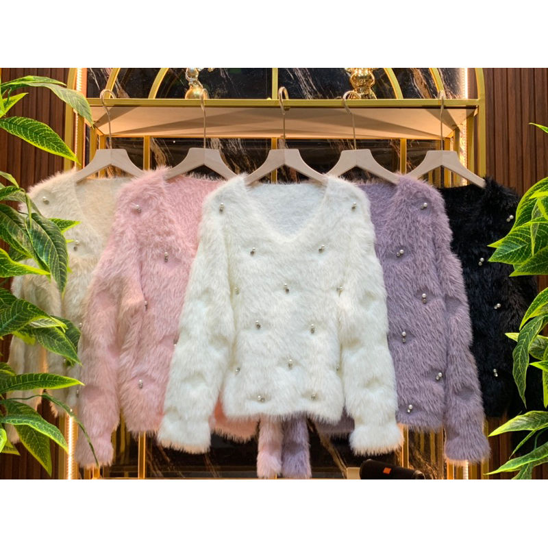 FW B1752 Sweater Blouse Rajut Bulu-bulu Import Premium