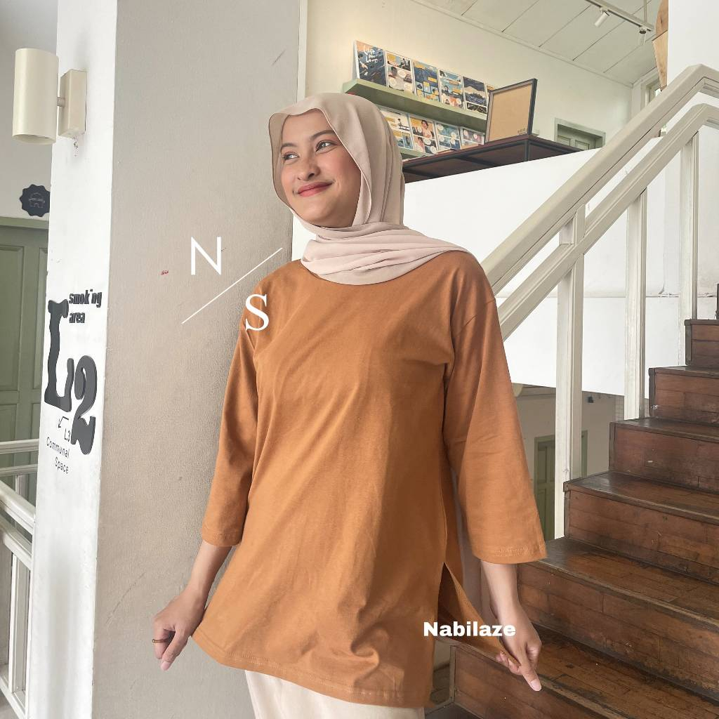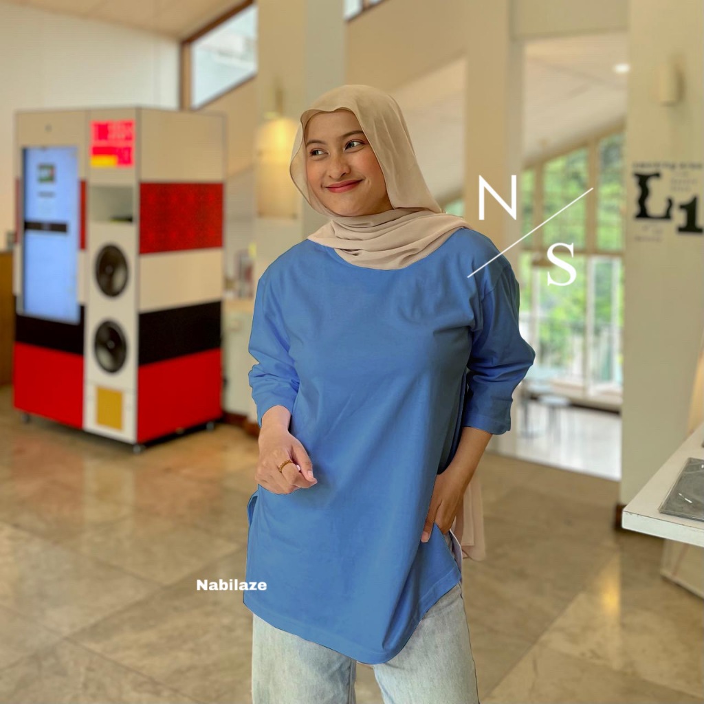 (Gratis Ongkir) KAOS POLOS OVERSIZE WANITA SLIT SAMPING LENGAN 7/8