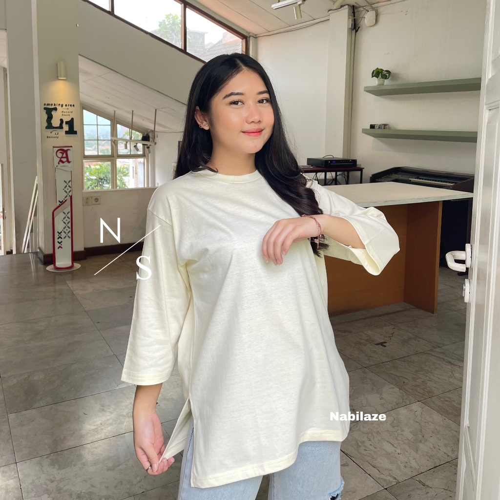 (Gratis Ongkir) KAOS POLOS OVERSIZE WANITA SLIT SAMPING LENGAN 7/8