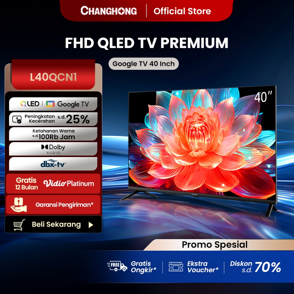 CHANGHONG QLED TV 40 INCH FHD DOLBY AUDIO GOOGLE PLAY NETFLIX YOUTUBE BLUETOOTH USB GOOGLE ASSISTANT SMART TV DIGITAL TV