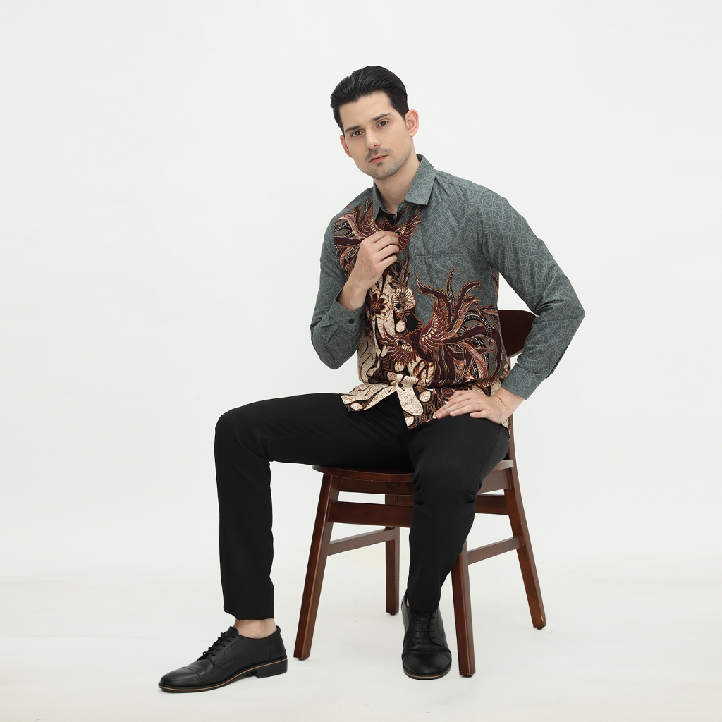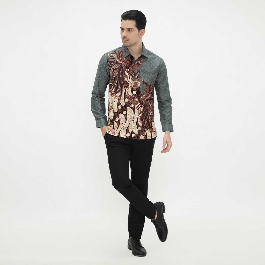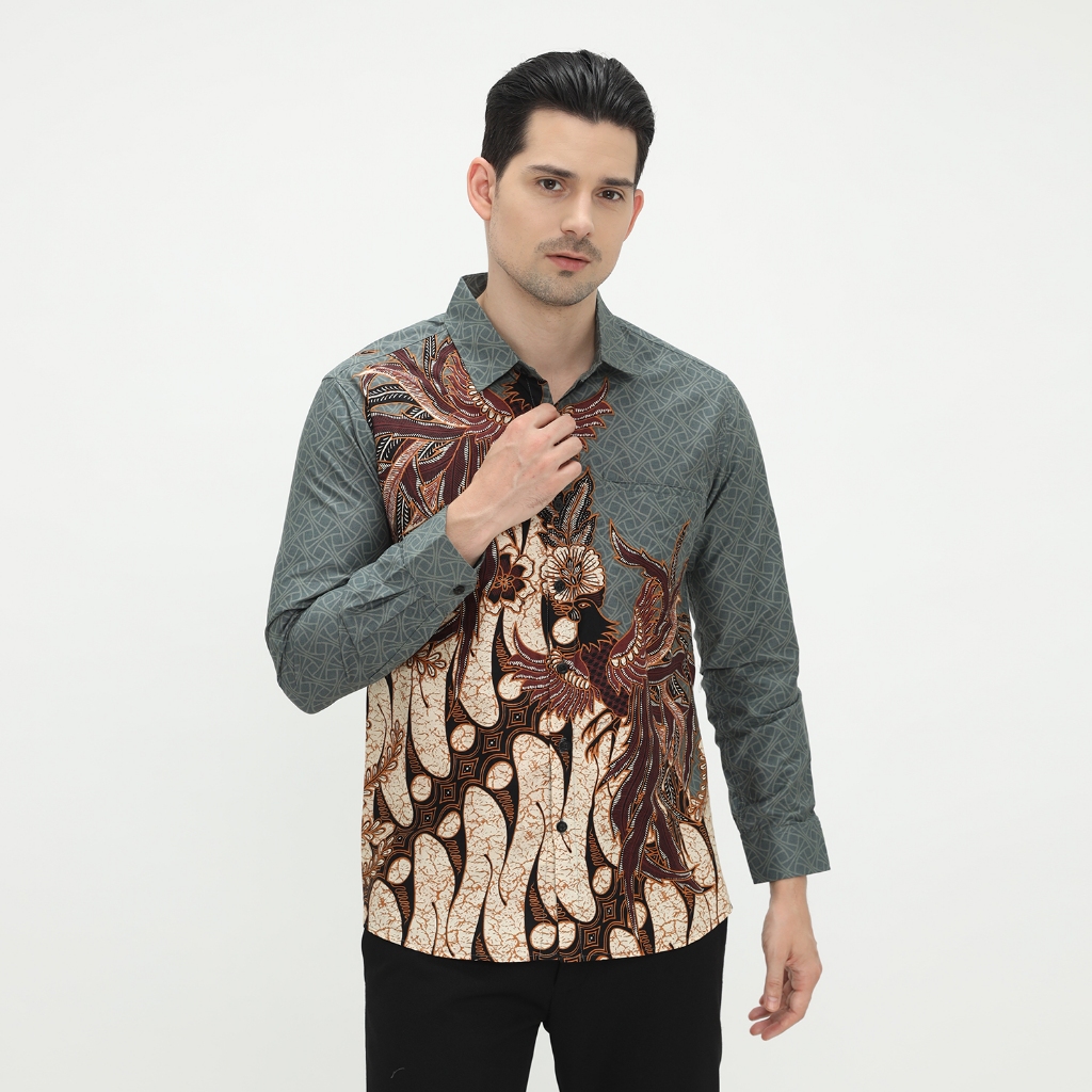 DANCUS Kemeja Batik Pria Lengan Panjang Batik Kondangan Pria Slimfitt Modern Warna Hijau Sage OLR 224