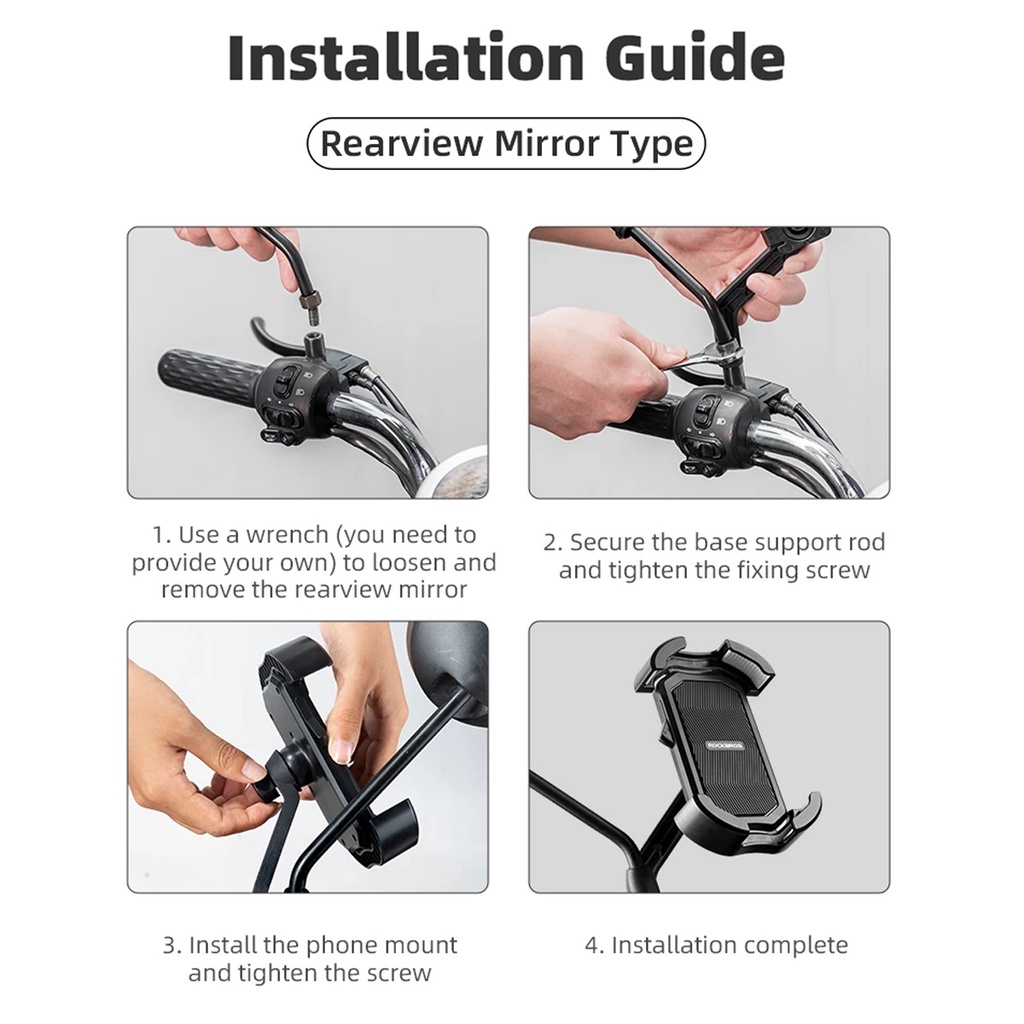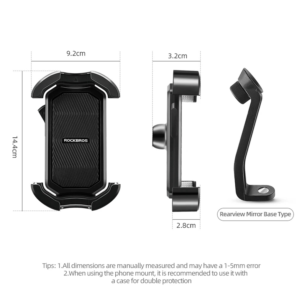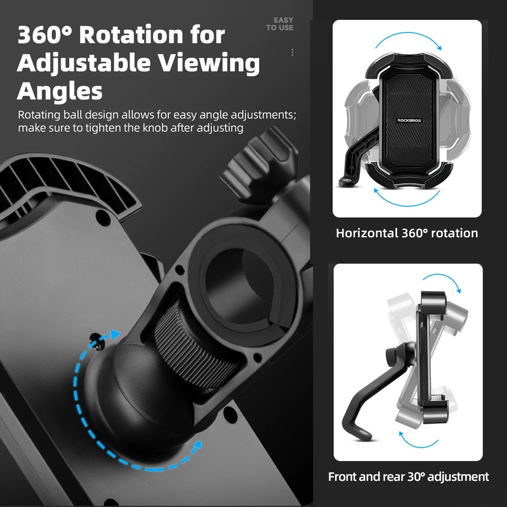 ROCKBROS HW128-1 PHONE HOLDER SPION BRACKET MOUNTING SEPEDA MOTOR ONE-CLICK LOCKING 360° ROTATION