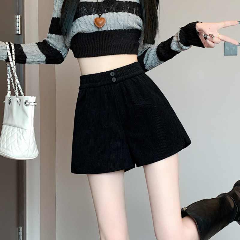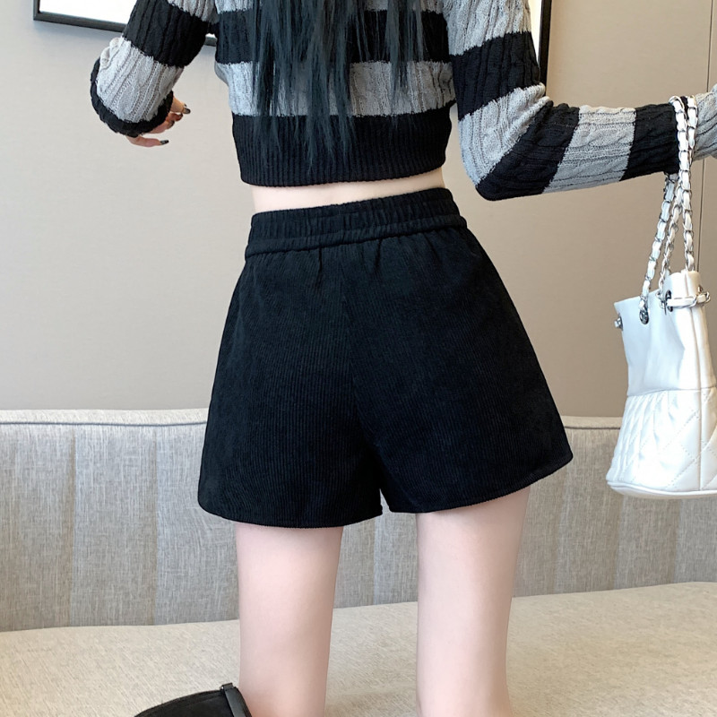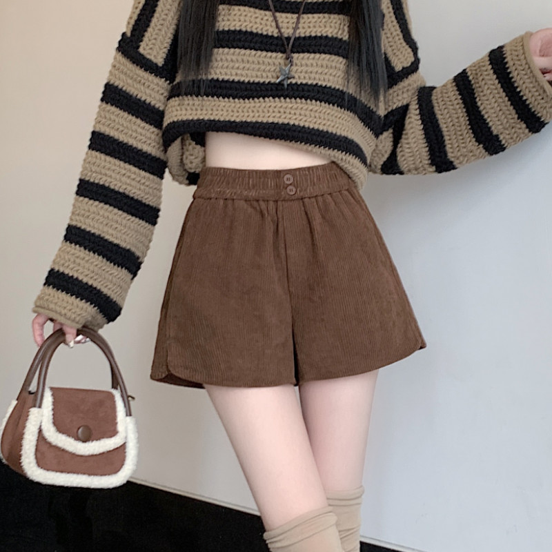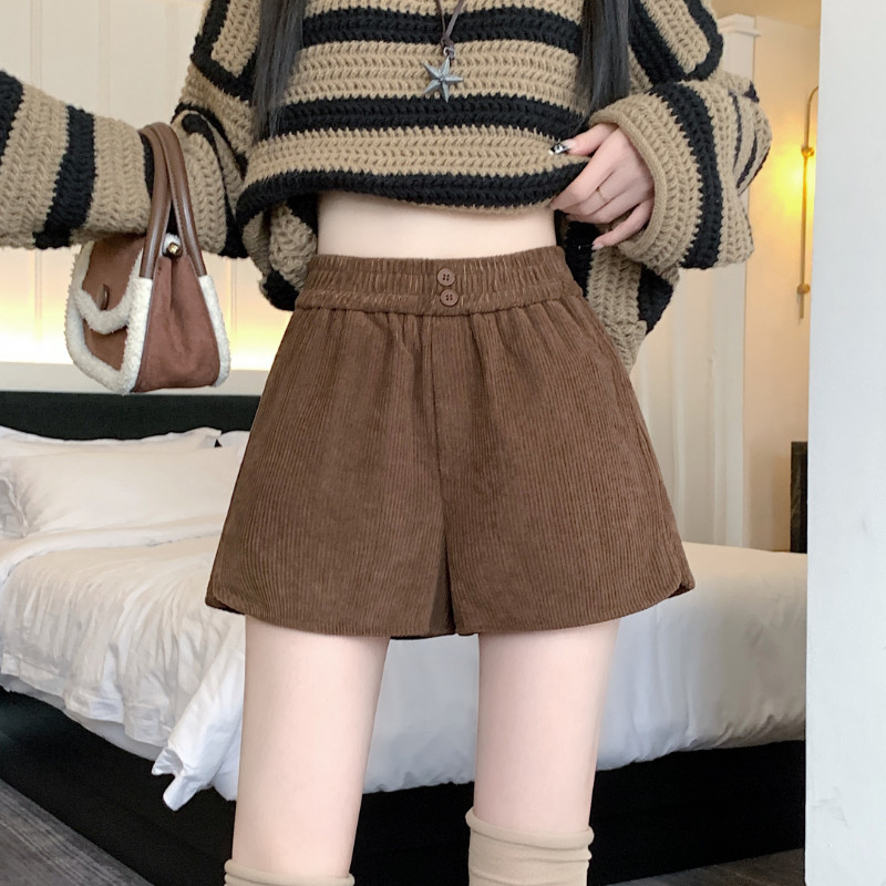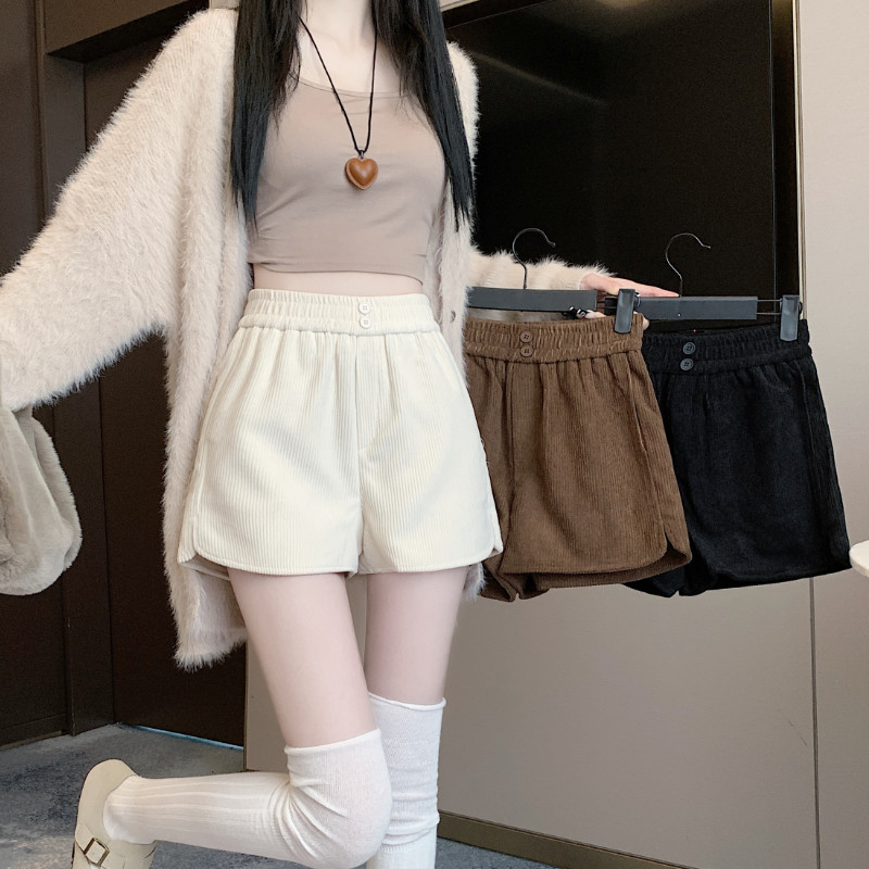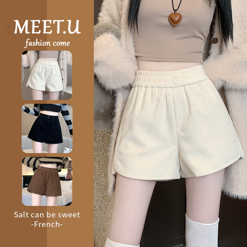MEET.U【Gaya Lucu】Celana Pendek Corduroi Wanita Kasual Celana A-line Longgar