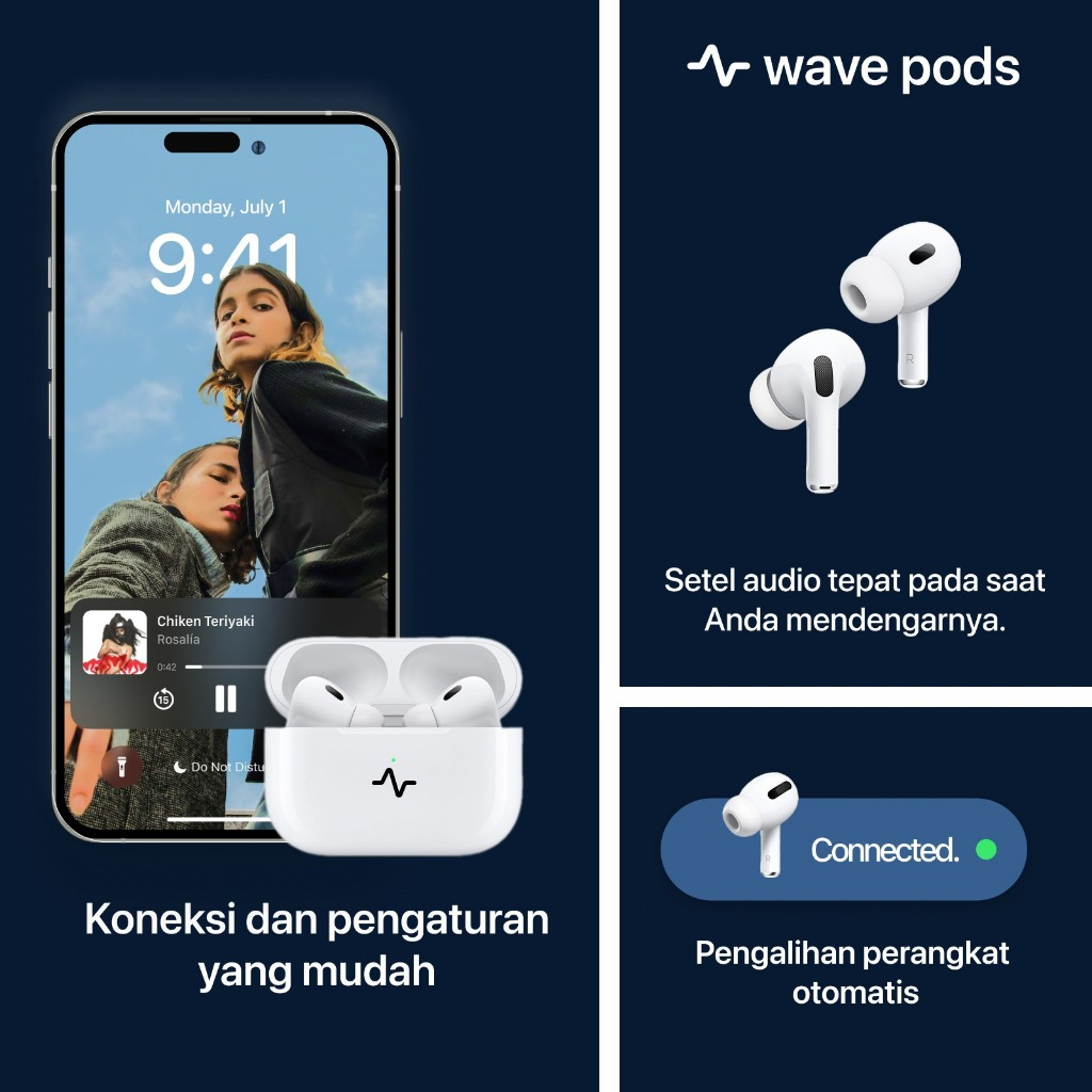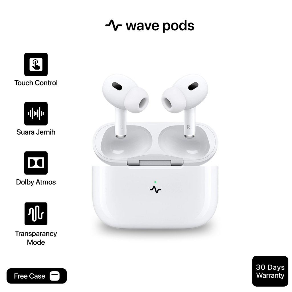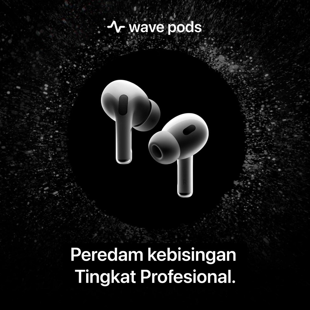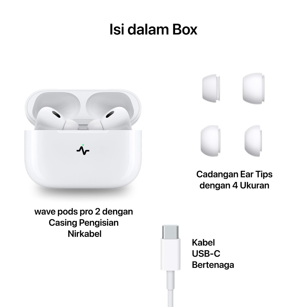 Wave Pods Pro 2 White TWS ANC Active headset bluetooth headset iPhone Android+ Free Silicone Softcase with Hook