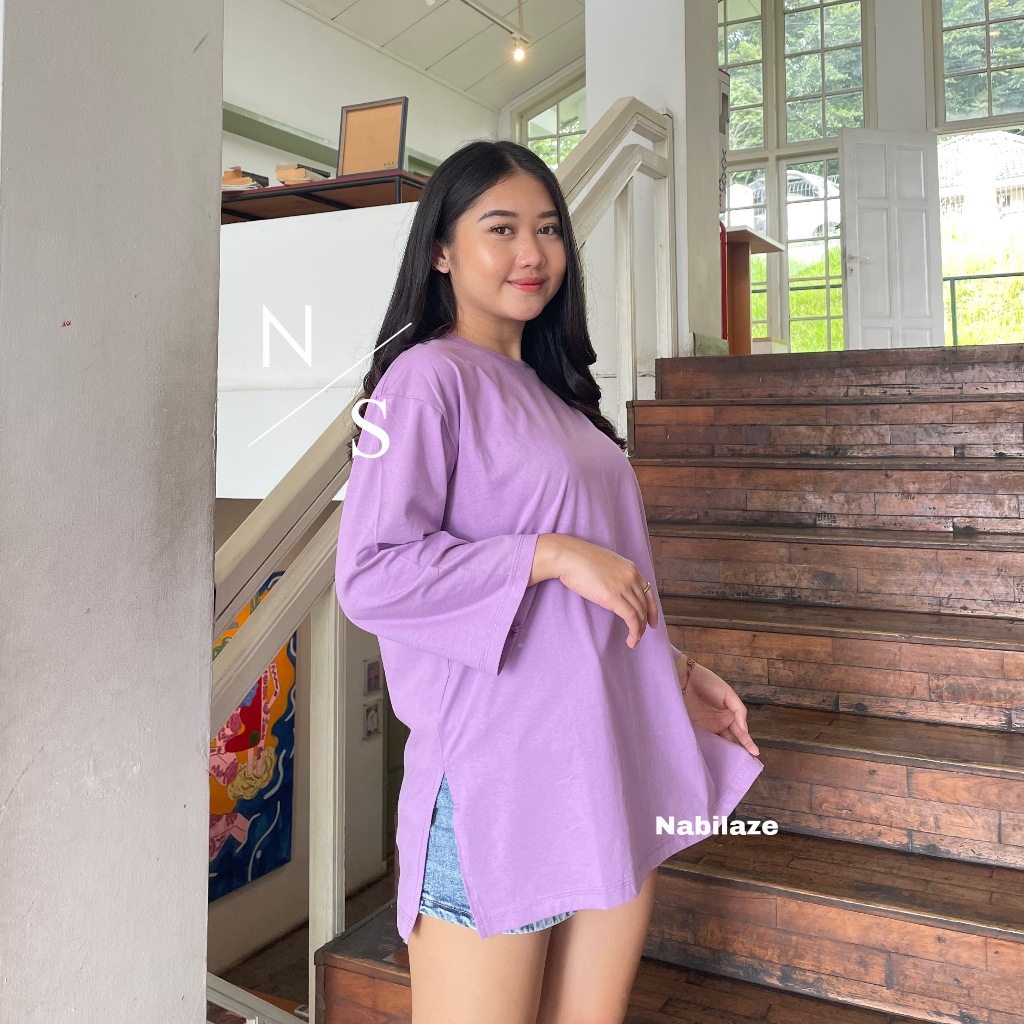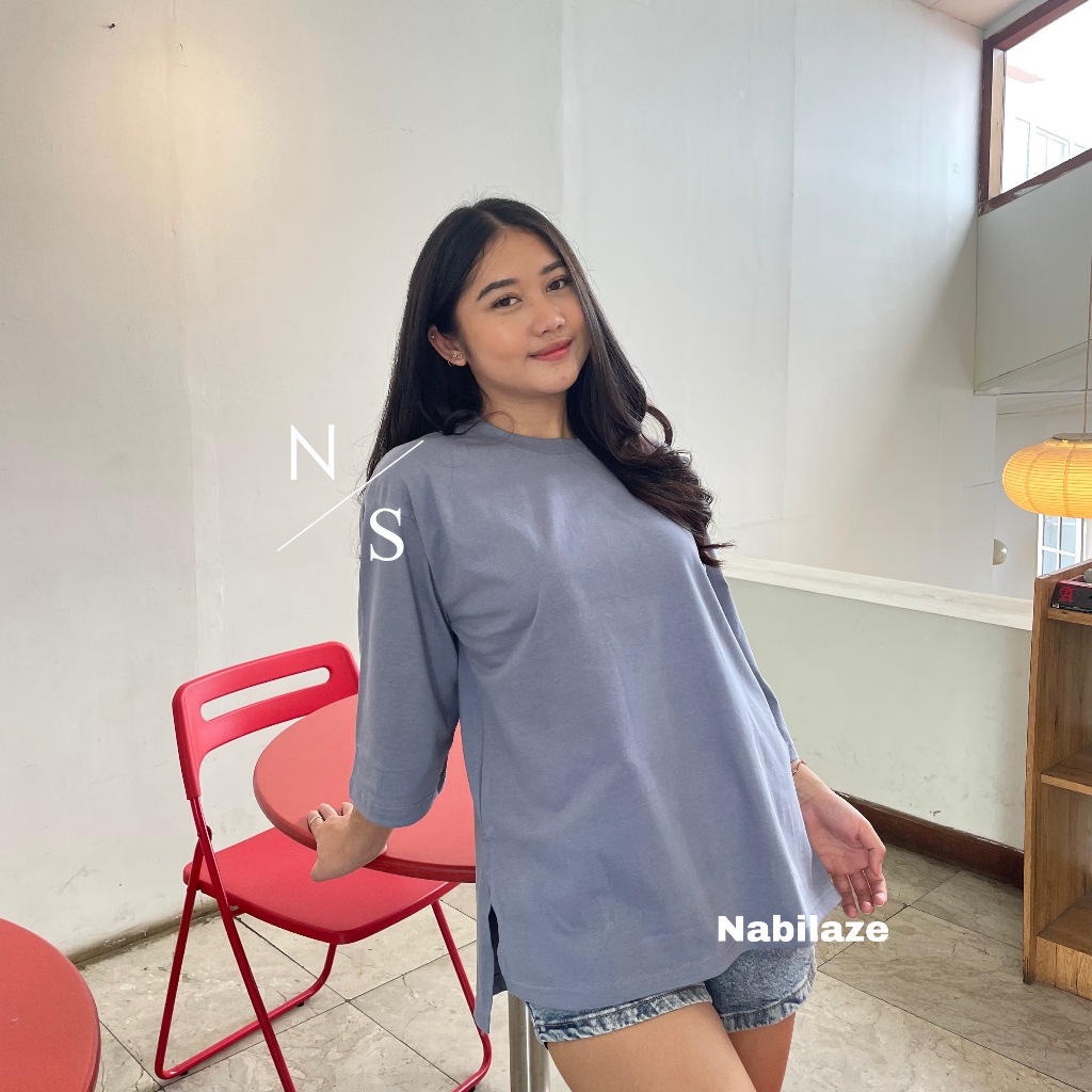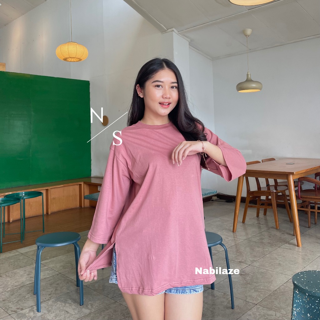(Gratis Ongkir) KAOS POLOS OVERSIZE WANITA SLIT SAMPING LENGAN 7/8