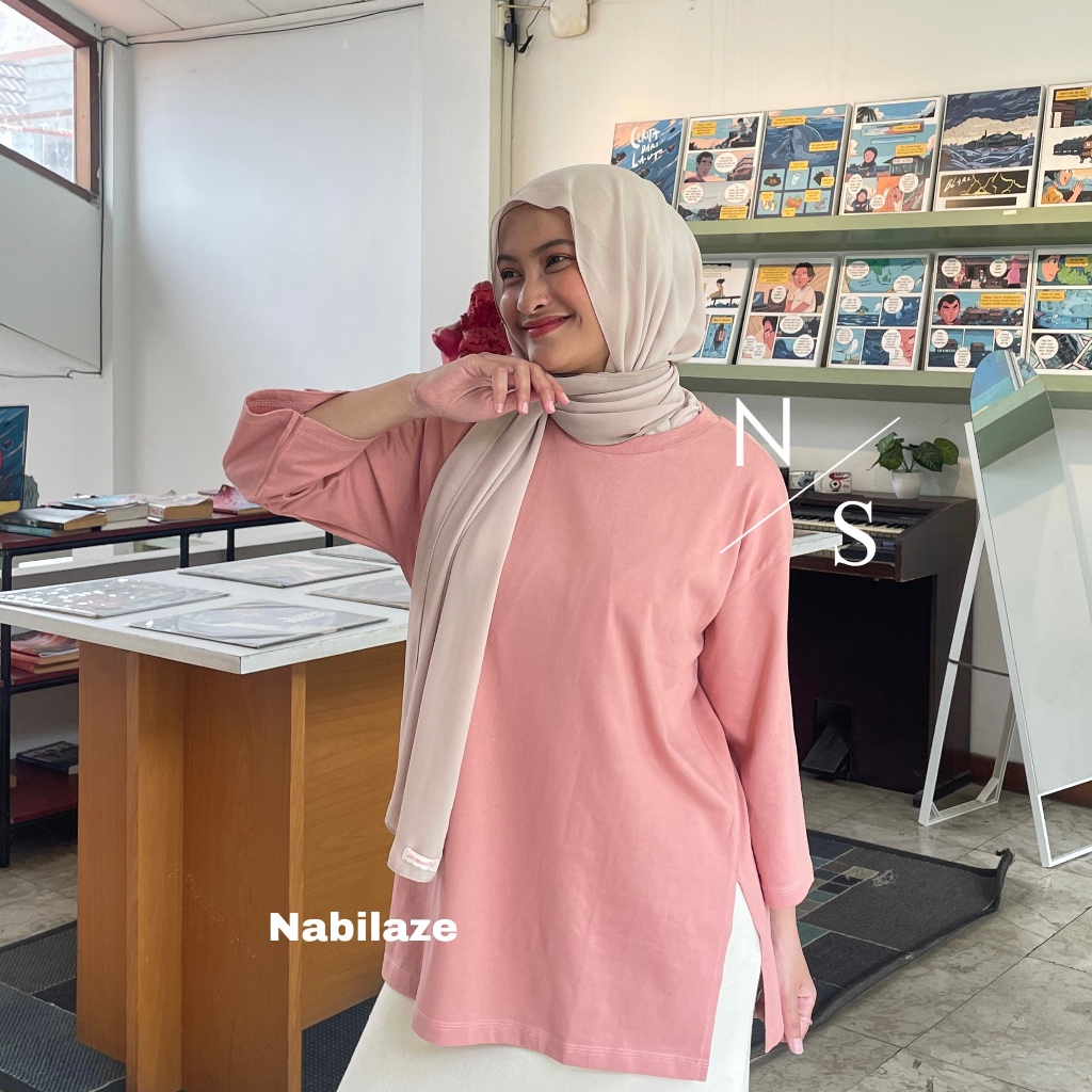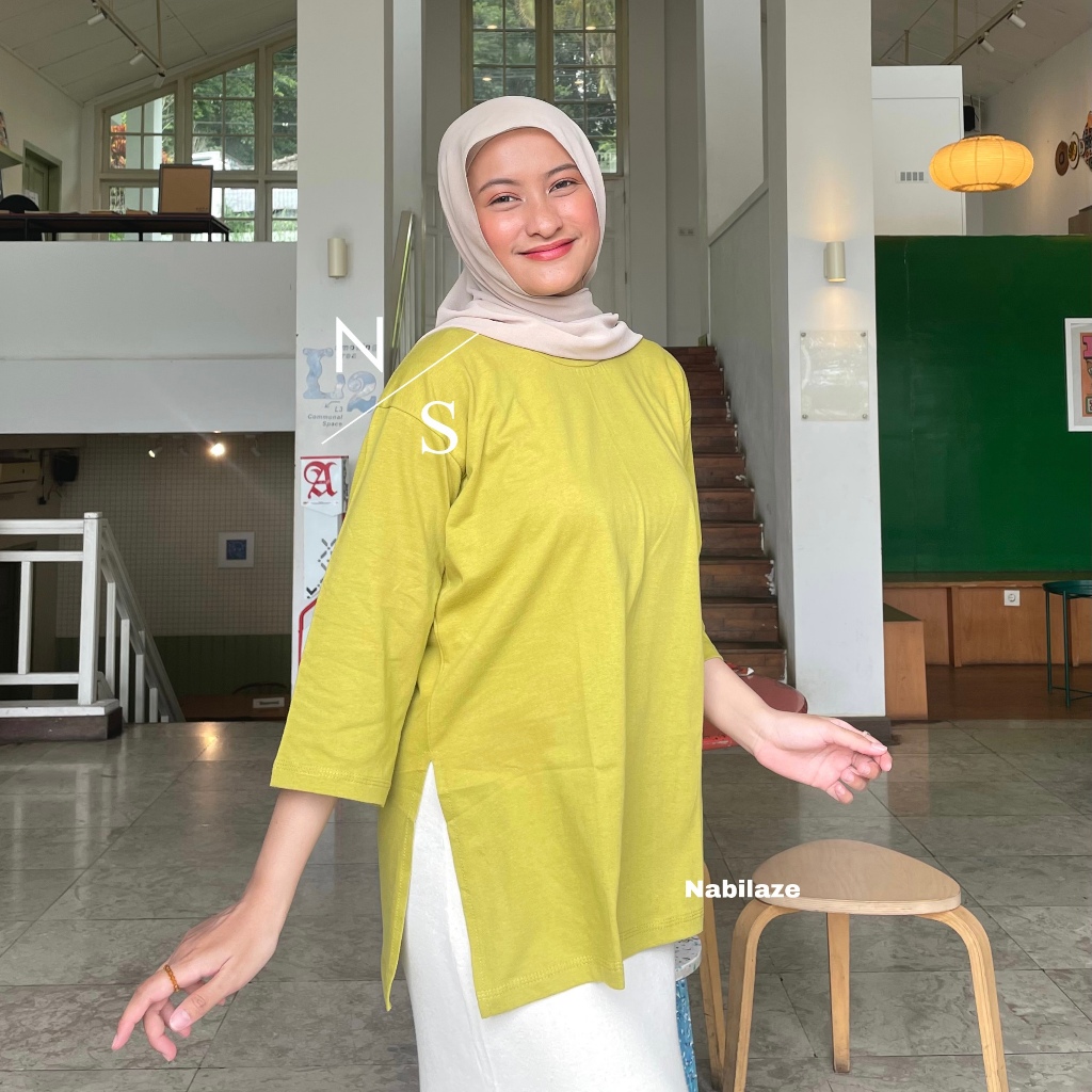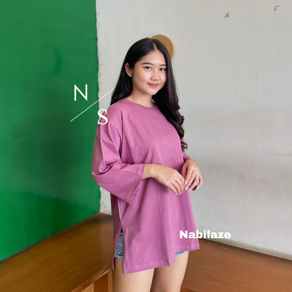 (Gratis Ongkir) KAOS POLOS OVERSIZE WANITA SLIT SAMPING LENGAN 7/8
