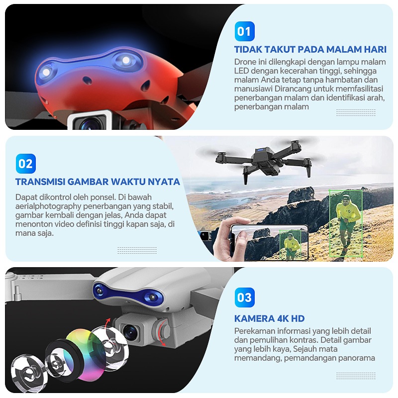 Drone E99 Pro Dengan Kamera HD Drone WiFi FPV Dual Kamera Drone 4K Kamera HD Posisi Visual