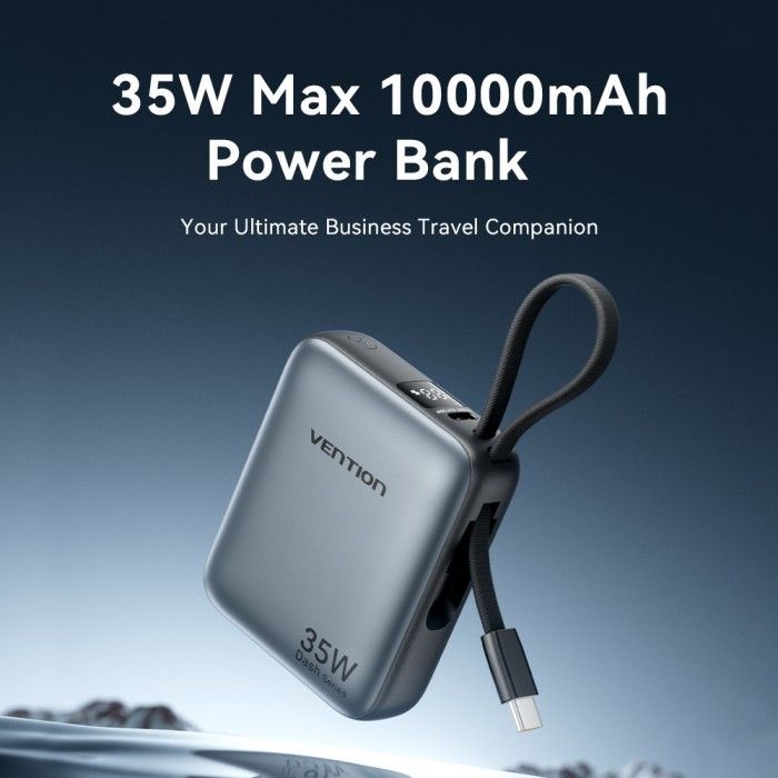 PROMO Vention Dash Series Power Bank 10.000mAh 35W USB-C Built in Cable PD PPS SFC - Wonderland Store Surabaya ORIGINAL