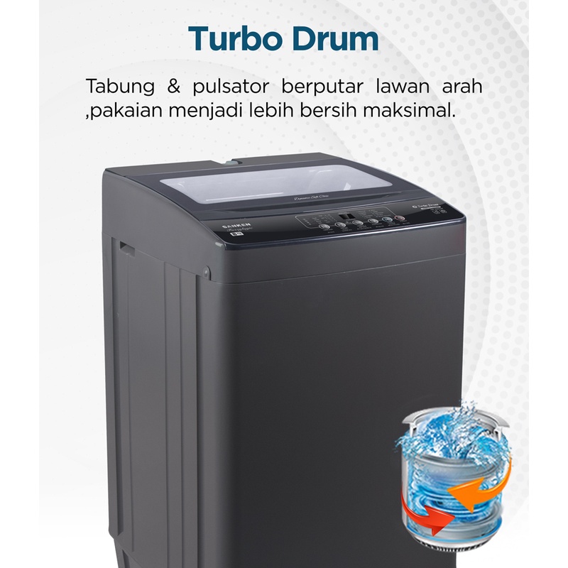 SANKEN MESIN CUCI 1 TABUNG 8 KG AW-S887GS-GRY GREY T0P LOADING