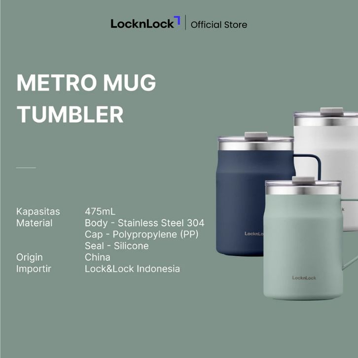 Tumbler Lock n Lock Tumbler Metro Mug 475ml - LHC4219 / Tumbler stainless tahan dingin dan panas