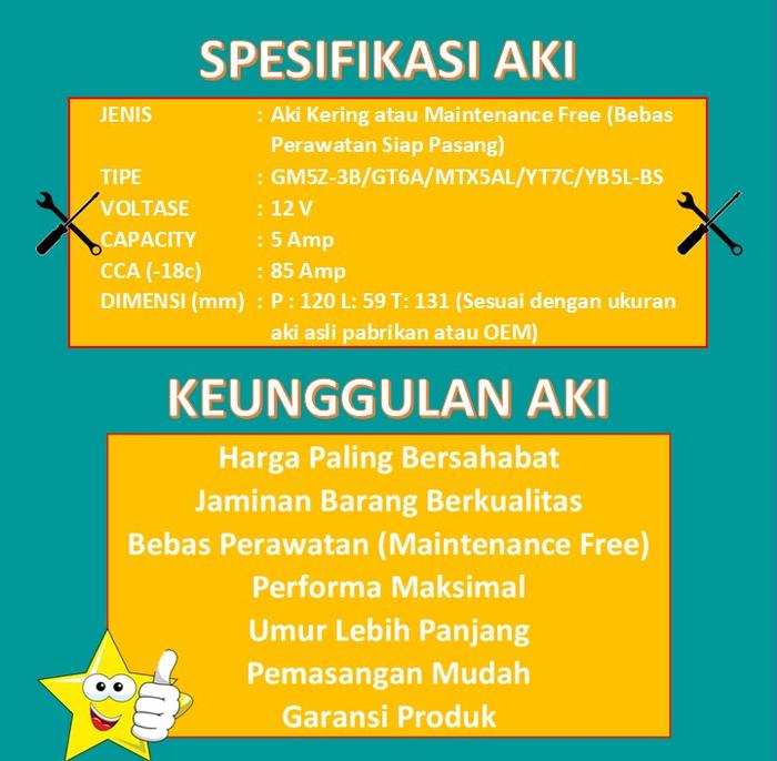 TERLARIS AKI MOTOR HONDA ASTREA GRAND DAN ASTREA PRIMA GM5Z3B