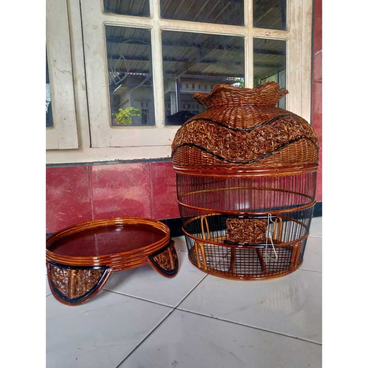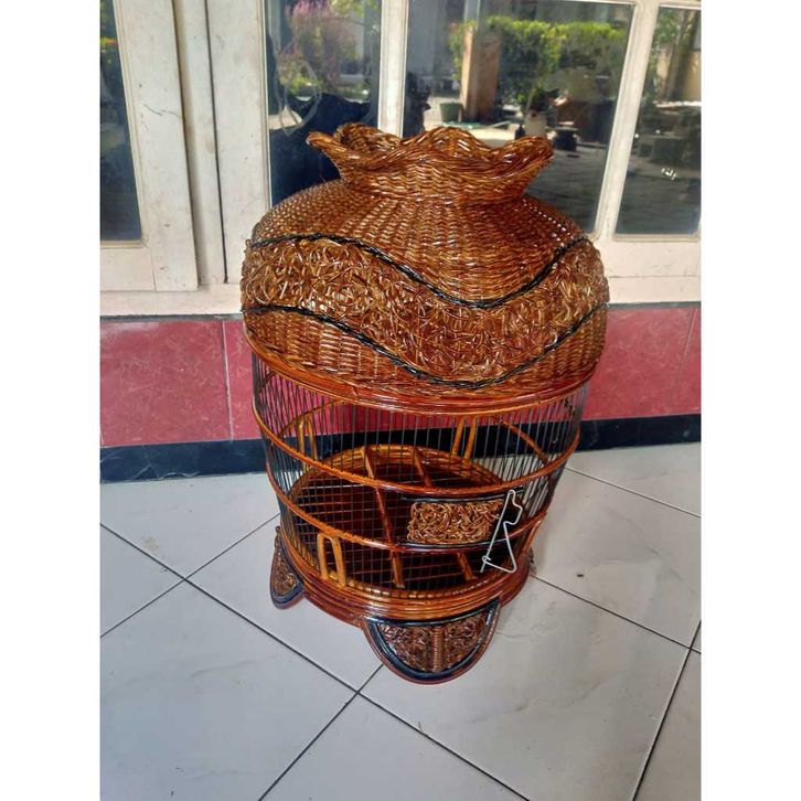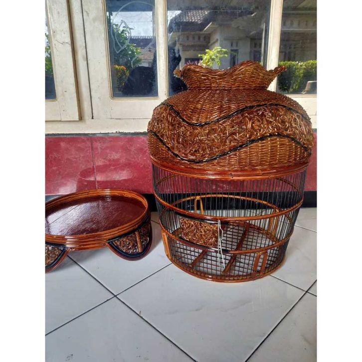 Sangkar Perkutut Anyaman Rotan Jeruji Fiber Anyaman Kruwel Kendit Tebok Copotan Full Finishing