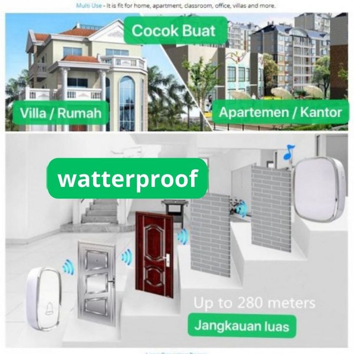Bel Lonceng Pintu BEL-003 2 Receiver Wireless Doorbell Waterproof Lonceng / Bell Pintu / Bel Rumah Door Bell