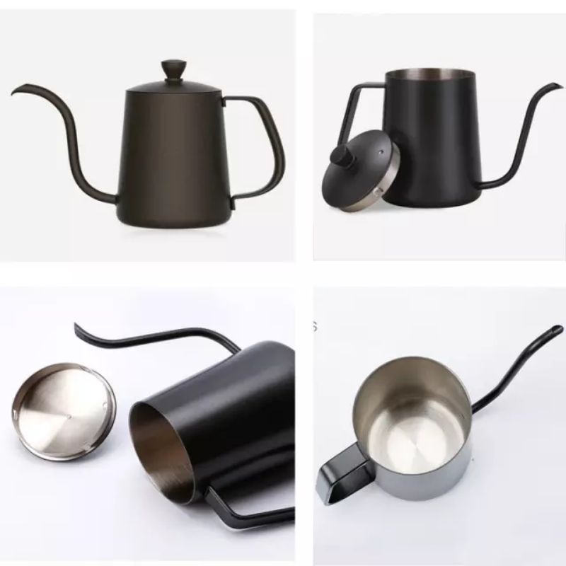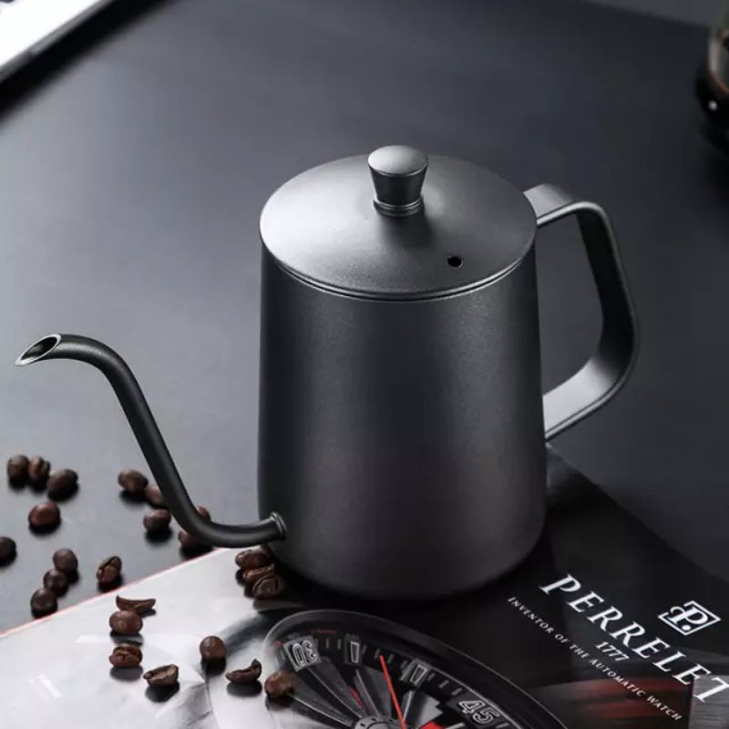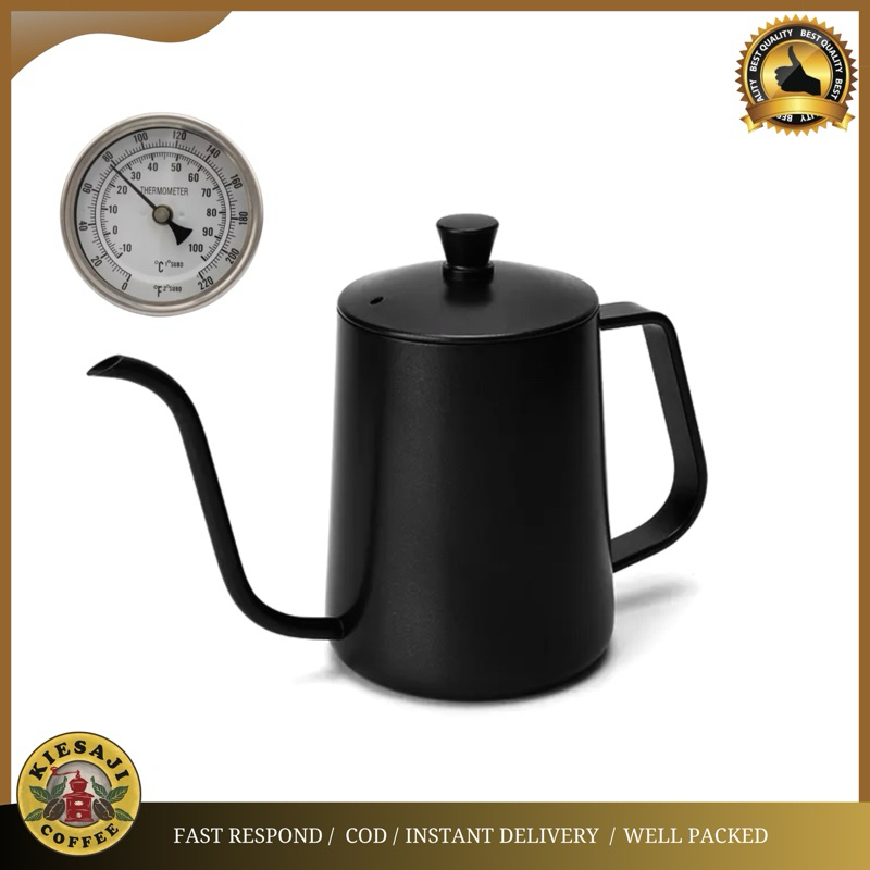 Teko Kopi Leher Angsa V60 350 ml 600 ml Thermometer Black Teflon / Pour Over Coffee Kettle Gooseneck Ketel Termometer Ba
