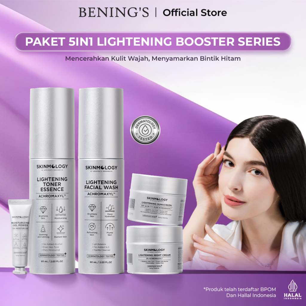 BENING'S Skinmology Paket 5 In 1 Lightening Booster Mencerahkan Dan Melembapkan Wajah BPOM