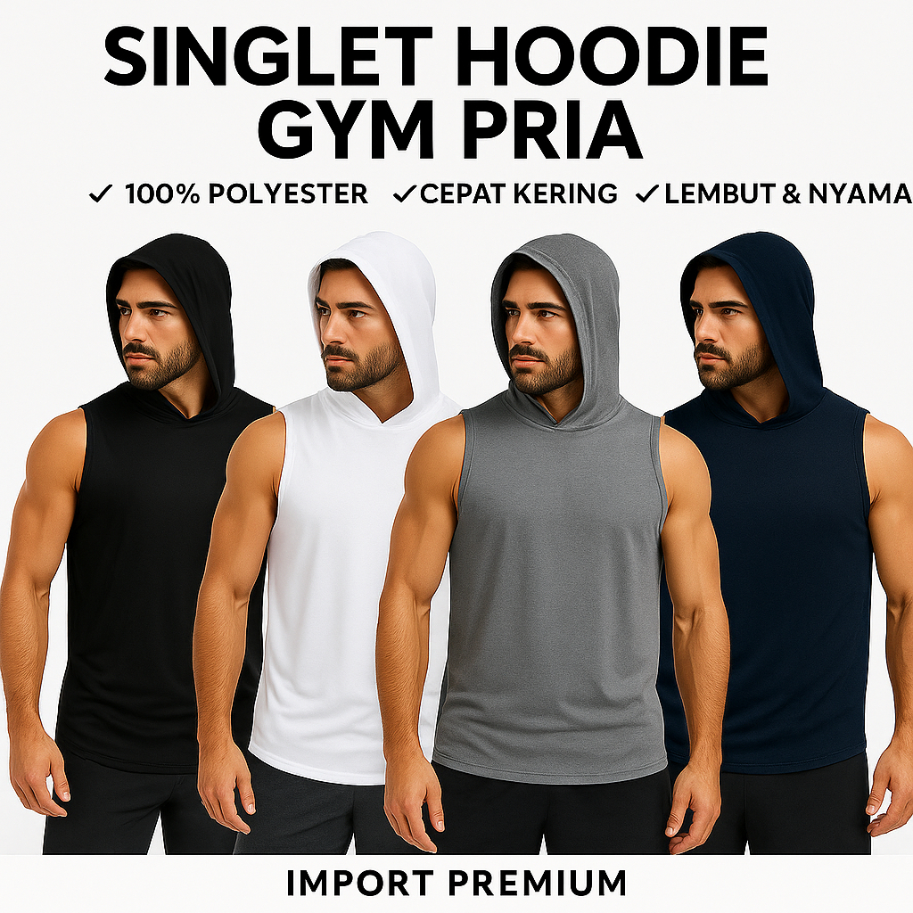 Singlet Hoodie Gym Pria Laris • Kaos Training Fitness Cowok • Baju Olahraga Import Premium