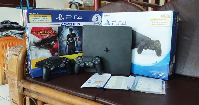 TERLARIS PS4 SLIM 500 GB BONUS GAMES GARANSI RESMI SONY INDONESIA 2 TAHUN 1 STIK GAMES CAMPUR