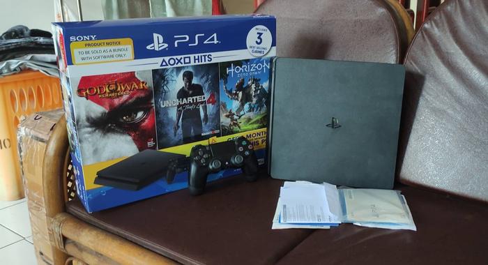 TERLARIS SONY PS4 PLAYSTATION 4 SLIM 1 TB 1000 GB HITS BONUS BUNDLE FULL GAMES 1 STIK GAMES CAMPUR