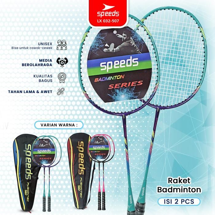 SPEEDS Raket Badminton Bulu Tangkis Olahraga Badminton Racket Badminton Berkualitas Murah Free Tas 032-507 - 515 BRU
