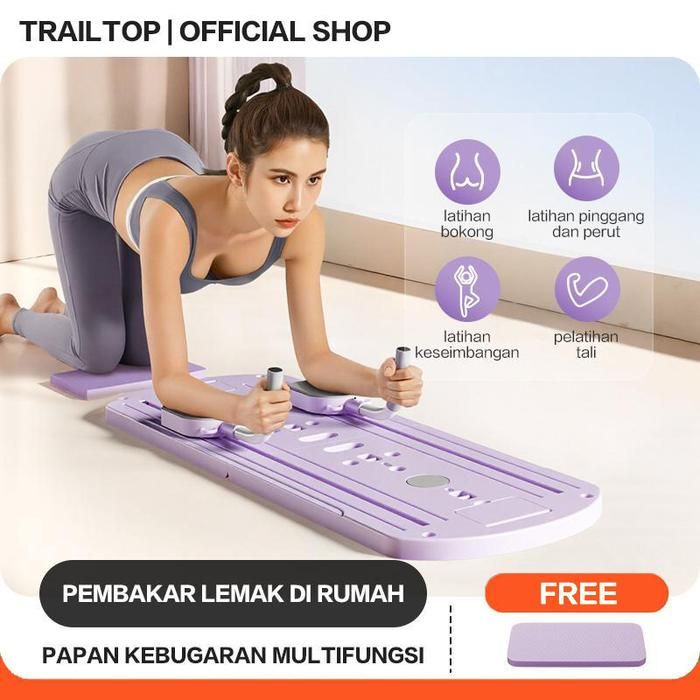 TrailTop Papan Perut Aerobik 5 ln 1 Push Up AB Wheel Roller Plank Trainer Alat Sit Up - Pink