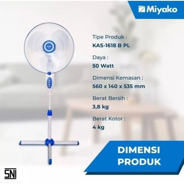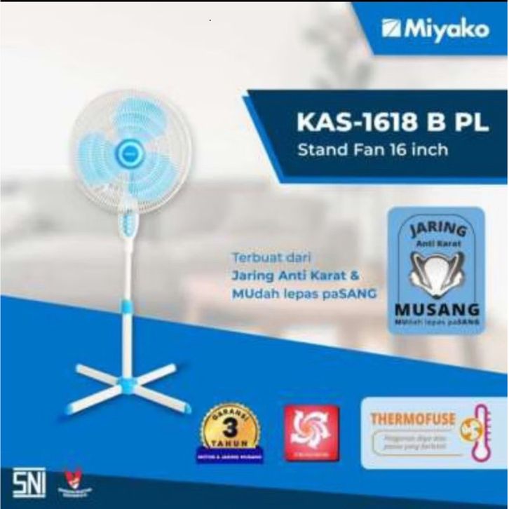 MIYAKO KIPAS ANGIN KAKI SILANG KAS-1618 BPL/Kipas Angin Berdiri Stand Fan KAS-1618 B PL 16Inch