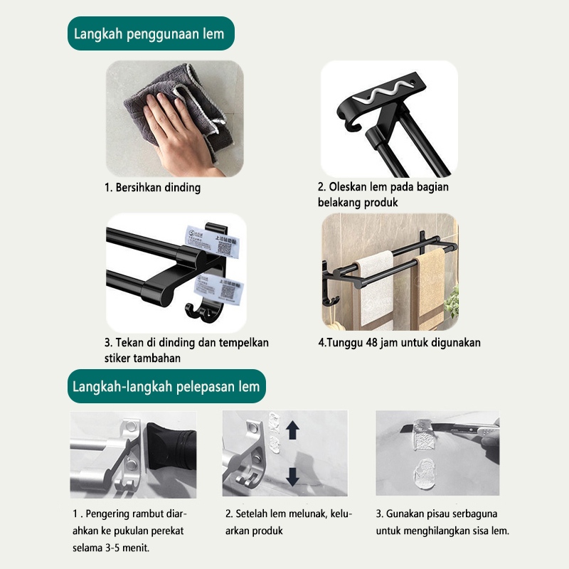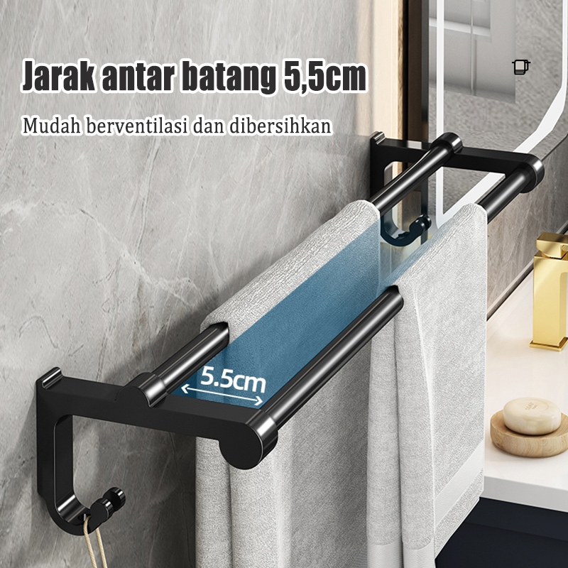 Rak penyimpanan kamar mandi rak handuk tahan air dan anti karat tanpa pengeboran dipasang di dinding
